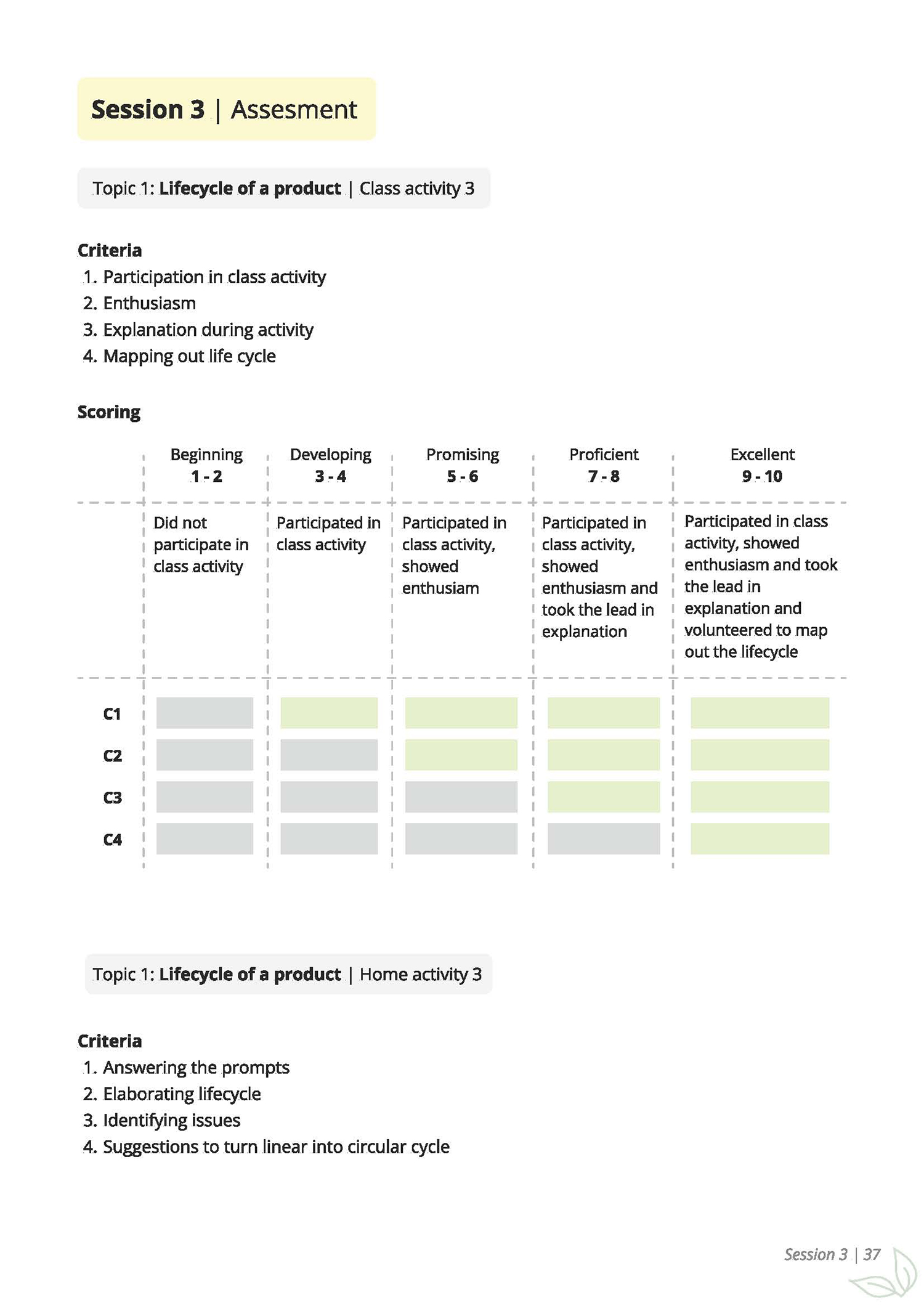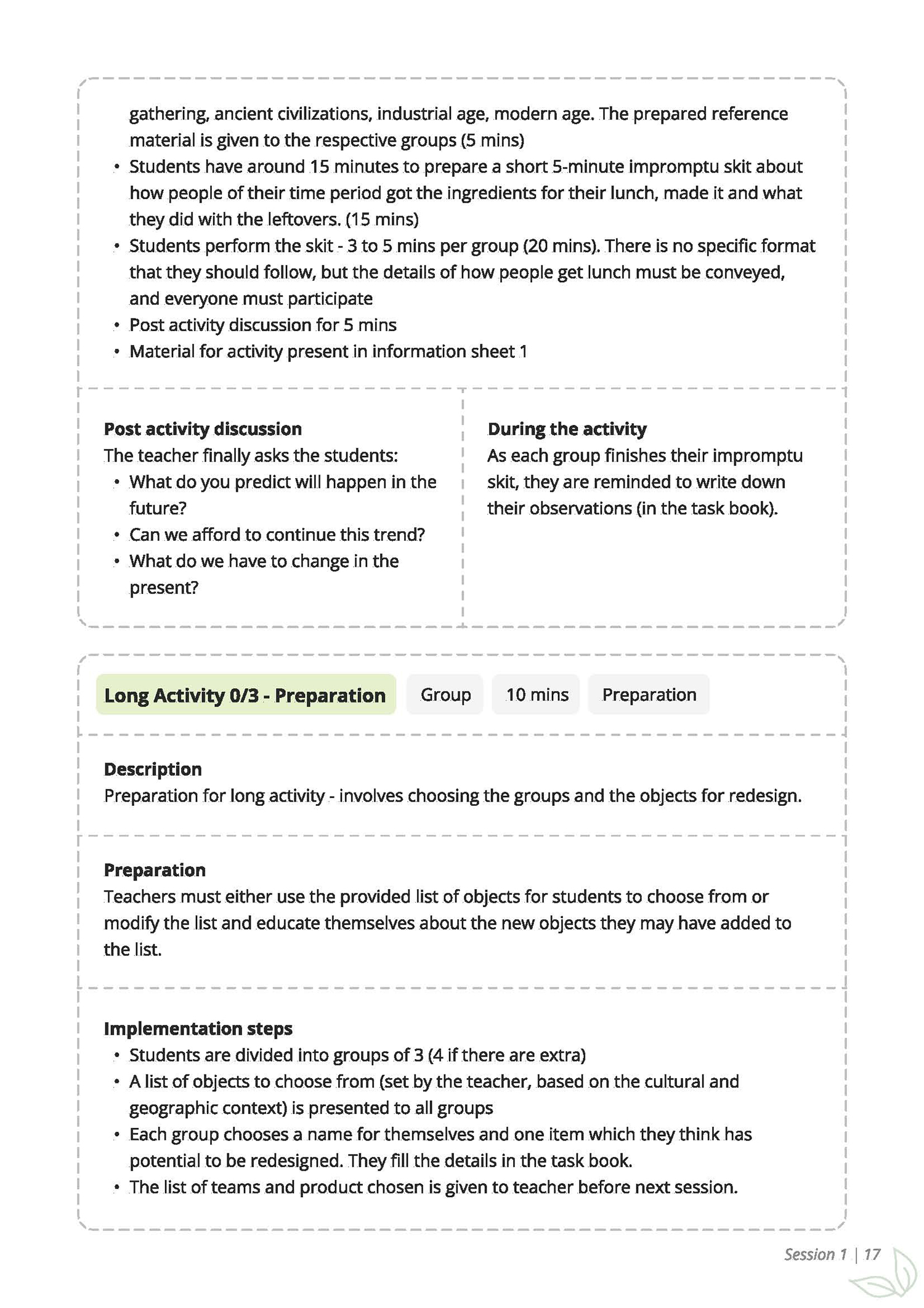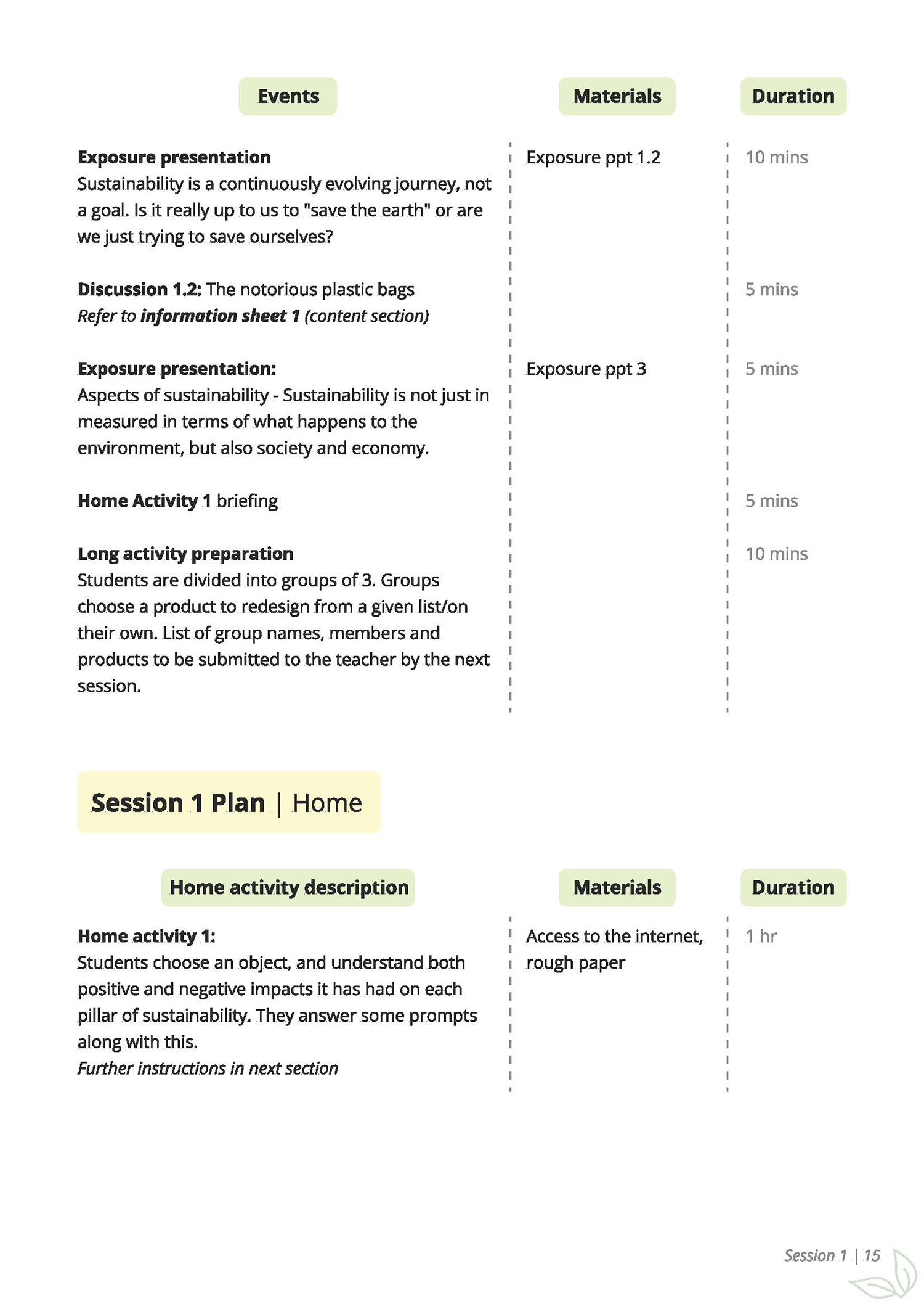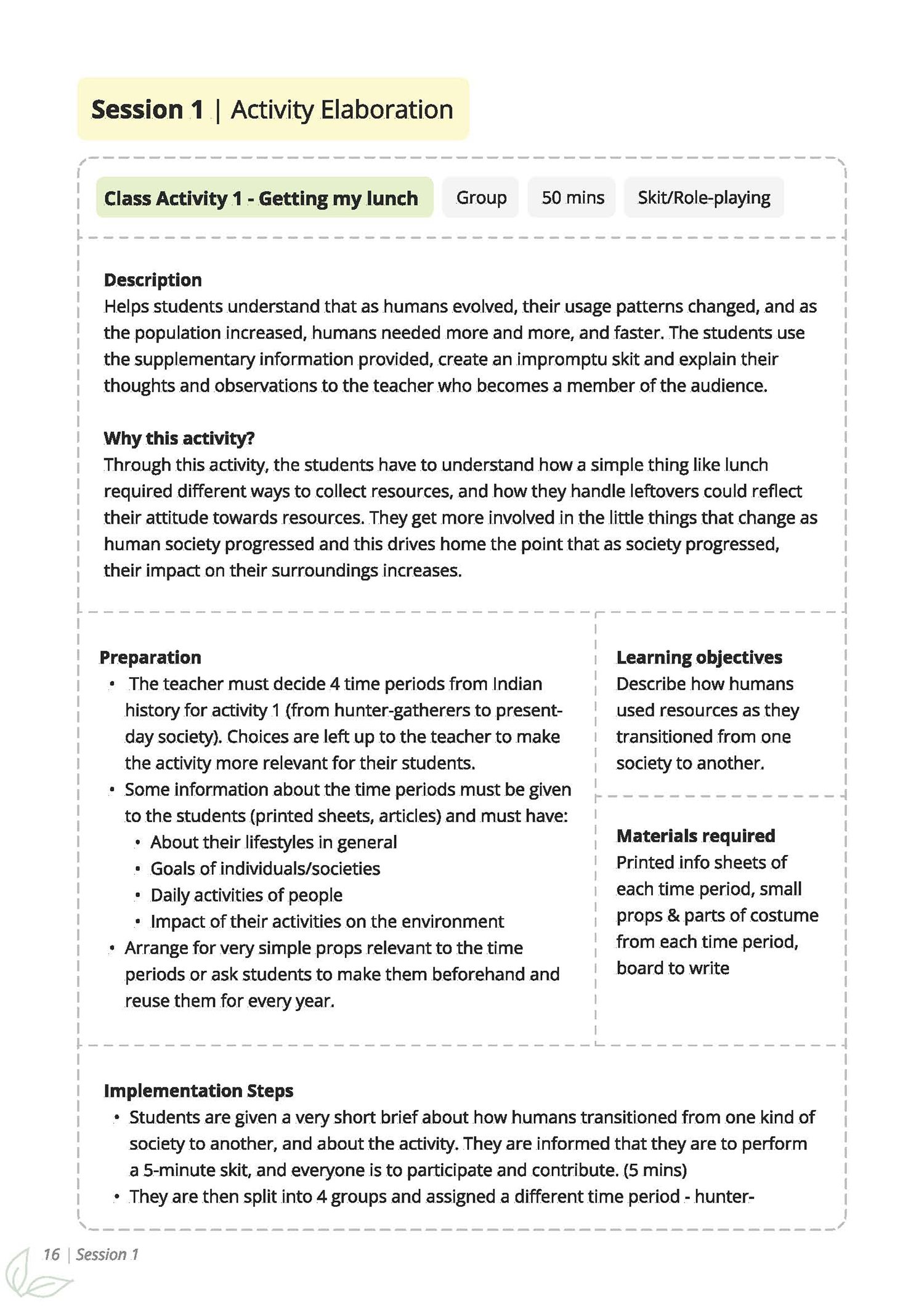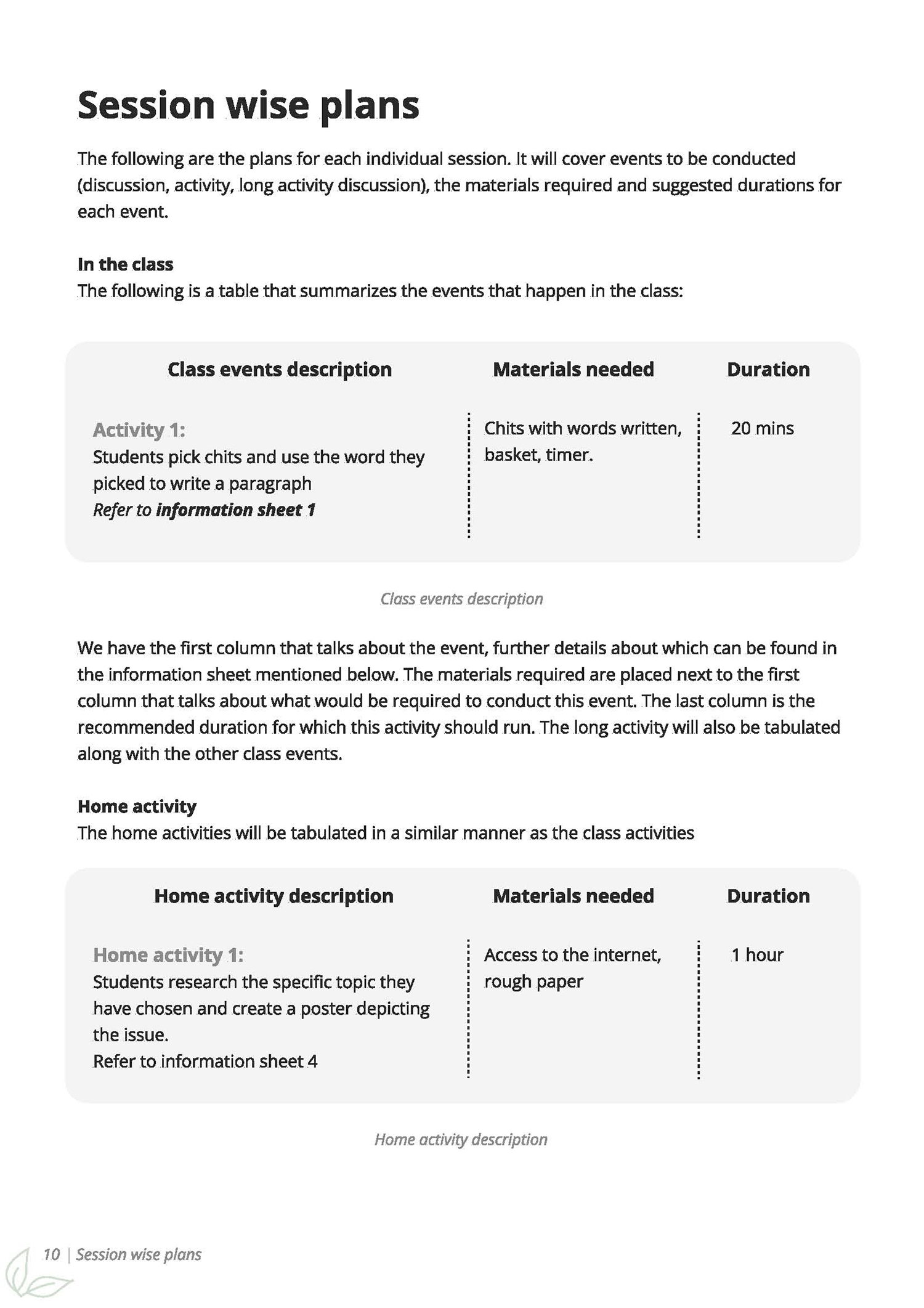 This module is a part of a much bigger design thinking elective for secondary school students of the CBSE board. This specific lesson plan is meant for class 10 students and aims to help students understand why we need to move towards more sustainable design practices and the approaches used to create more sustainable products. They learn to think holistically, in terms of systems, and analyse the lifecycle of a product. They finally learn about sustainability strategies and technologies and how to apply them. The module has been designed in accordance to Kolb's experiential learning cycle where new knowledge is built on top of existing knowledge that students already have.