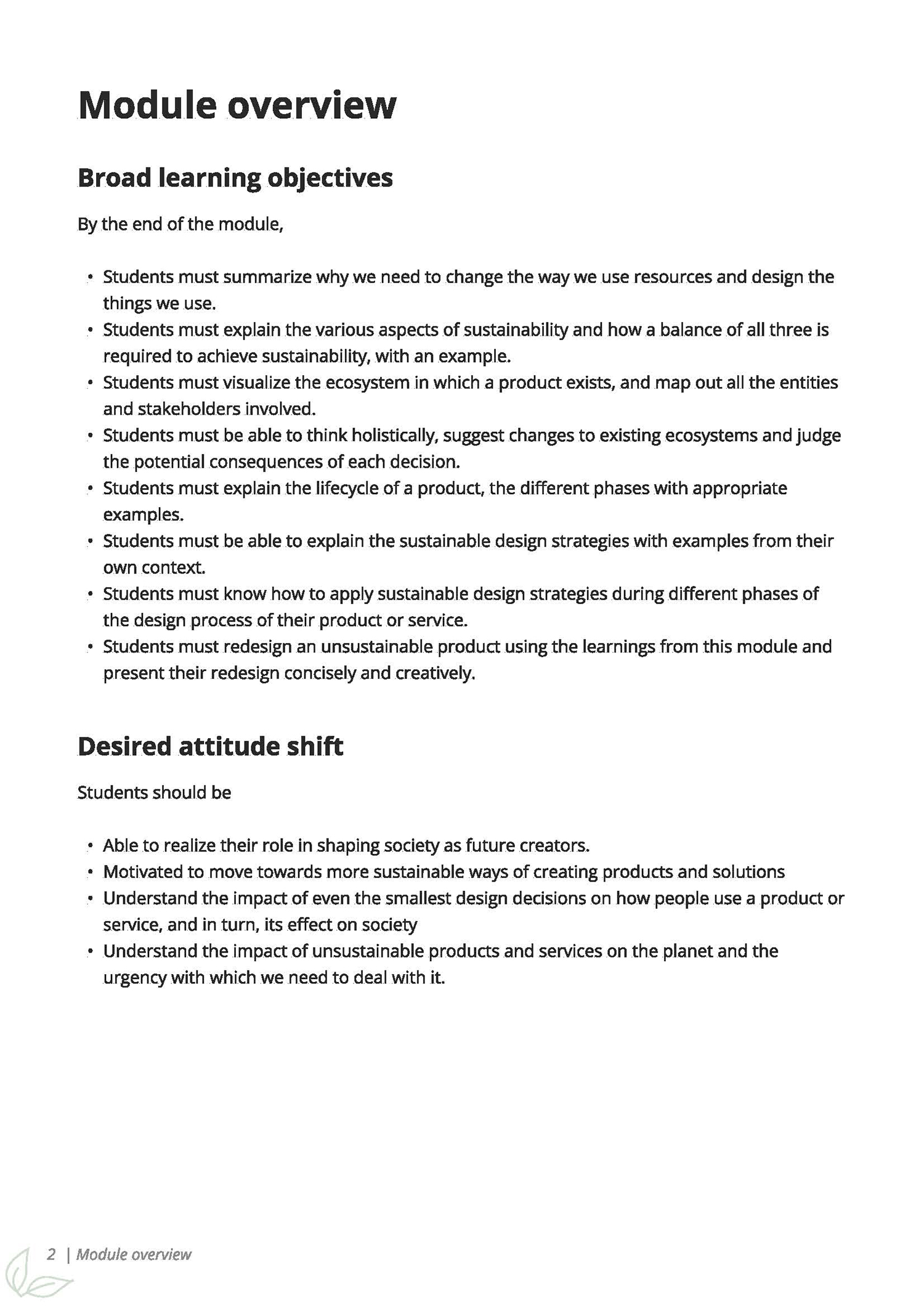 • This module looks at sustainable design through the lens of anyone involved in the design of products.
