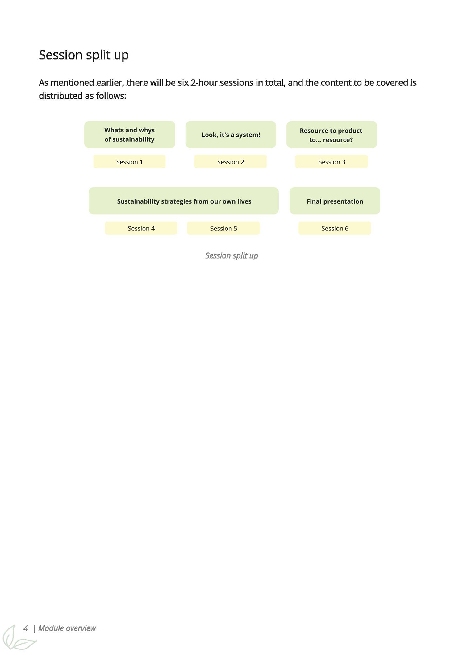 • This module focuses only on products, as the duration of this module is too short to cover other elements that affect sustainability.