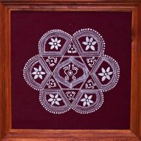 Aipan is a traditional folk art specifically made by women of Uttarakhand. This art is done on floor over brick red background with white paste made out of rice flour. The typical art is done on all special occasions and household ceremonies and rituals. It is believed that these motifs evoke divine power which brings good fortune and wards off evil.