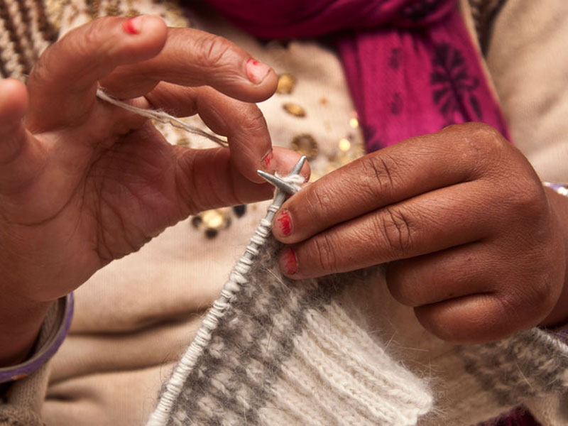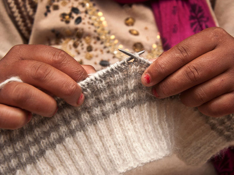 Darkot is located in Munsiari tehsin of Pithoragarh district. Angora rabbit's fibre is light, soft and silky textured and especially known for its good thermal insulation characteristics. Woollen products are created in two methods one is weaving and the other method is by knitting method. The process of creating yarn into beautiful caps, shawls, mufflers and sweaters is very creative and done with minimum tools. Women artisan of Darkot village are not only skilled in making woolen products, they also take care of agriculture during rainy season.