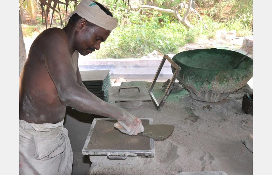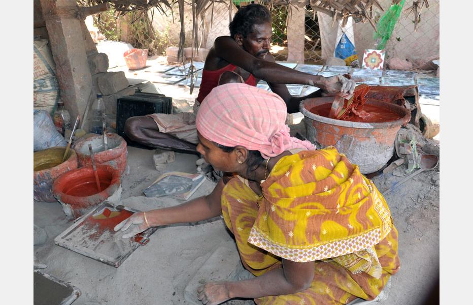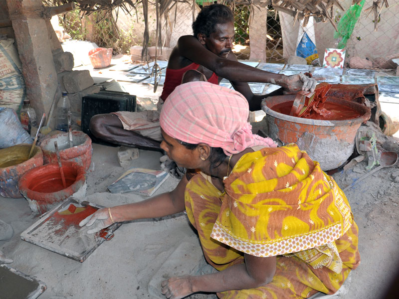 The Athangudi tiles a popular handmade decorative floor tiles, originating from a village called Athangudi in the Chettinadu region of Tamil Nadu. Athangudi tiles are completely handmade floor tiles, which add charm to the interiors of a house. These flower tiles of Athangudi stands out for its class, bringing forth the rich cultural heritage of the Chettiar community. The art of making these tiles is a traditional activity at Chettinad. The raw materials used for making athangudi tiles are the local soil, cement, baby jelly and synthetic oxides. It is unique and supreme, as it comes in a variety of colors and patterns made by a distinctive process of making tiles.
