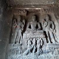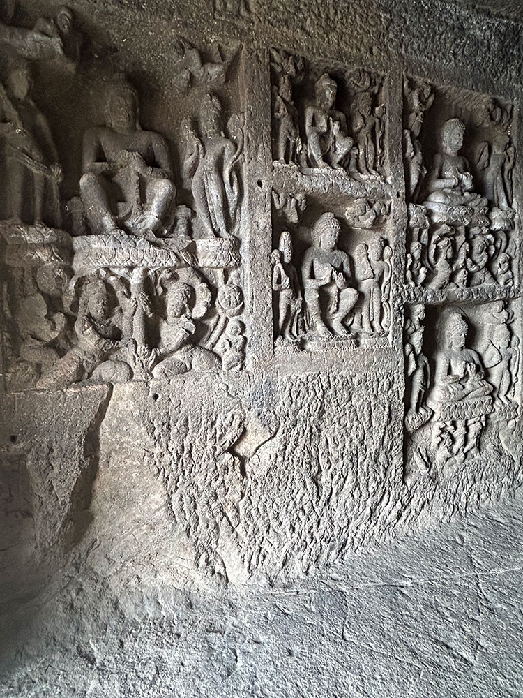 A beautifully carved murals in the Aurangabad caves.