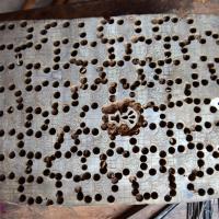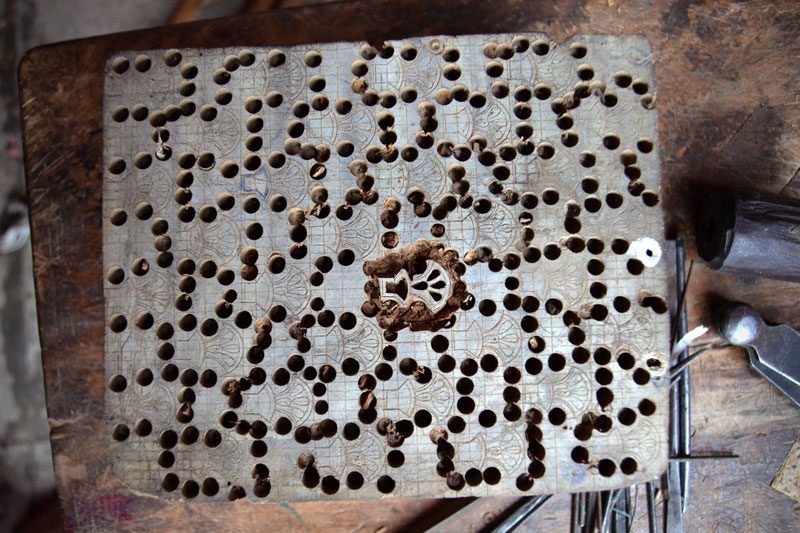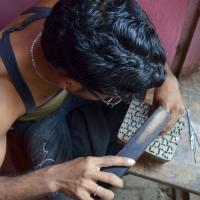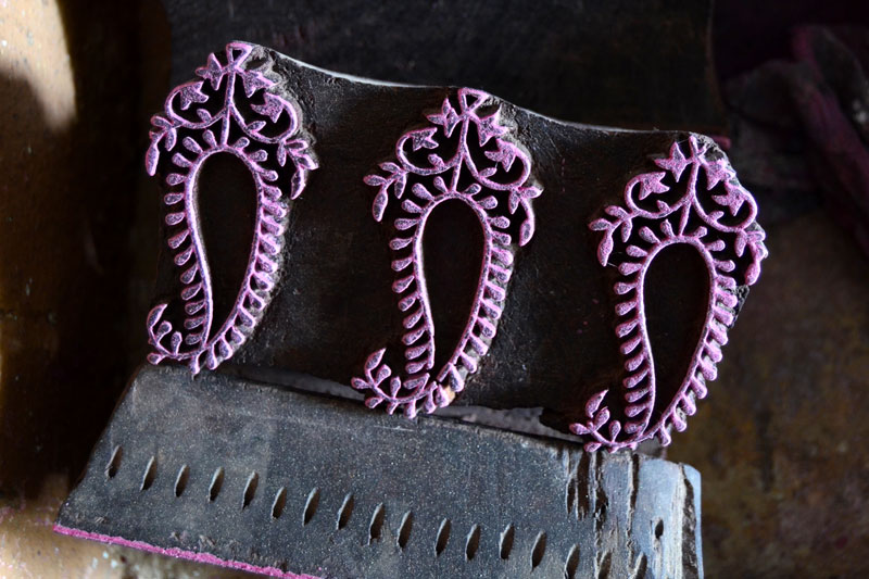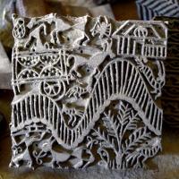The art of textile printing forms an inseparable component of India's most celebrated heritage. The wooden block printing in Madhya Pradesh has assumed the status of a craft with the passage of time. Although it has always flourished in the state, different styles and schools of textile printing from neighboring states have influenced it as well. The most significant aspect of this craft is the use of natural colors extracted from different flora and vegetables. These do not fade easily. Bagh prints, as they are beginning to be called now, are dramatic in the use of black and red alternately on a white background. Blocks are the main source of printing and have highly stylized motifs evolved over hundreds of years. These were earlier made of clay. Now these are being done in metal and wood ('sagavan' and 'shisham') that are sourced from Indore and other places nearby. Wood is first cut to make a block and one of its sides it smoothened. It is then painted white and the design is engraved and carved. Holes are drilled upto two centimeters on the sides of the block to avoid air bubbles. This also ensures that the block doesn't stick to the fabric because of vacuum during printing. Handles are made for easy grip. Blocks are of two types: Rek and Gad. Gad is a 'filled block' and is used for printing the base of the pattern. Rek is used for intricate prints that are done inside the spaces left blank by the Gad block.