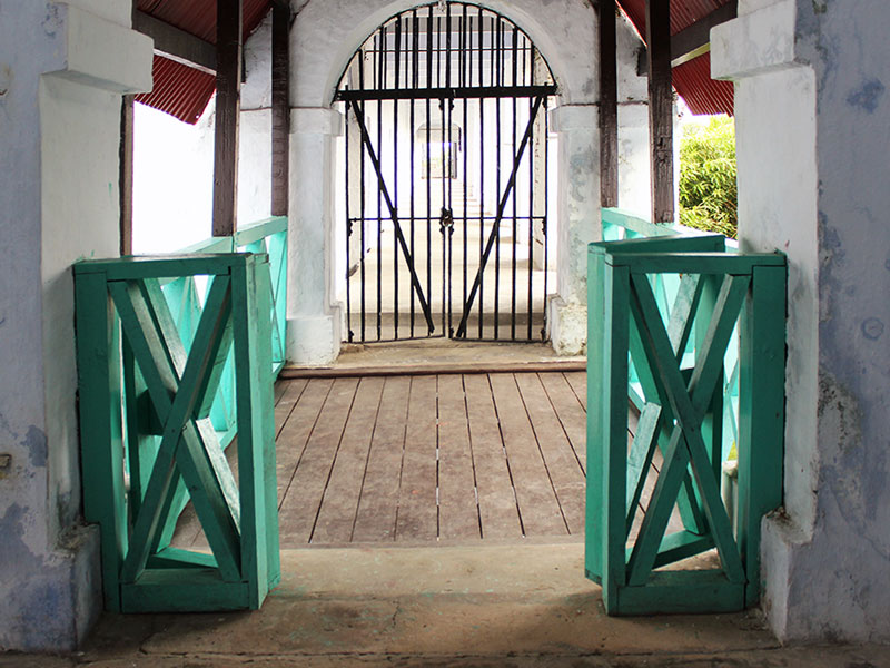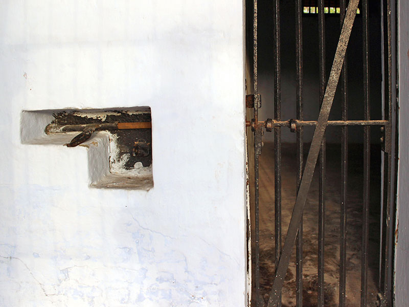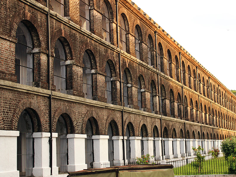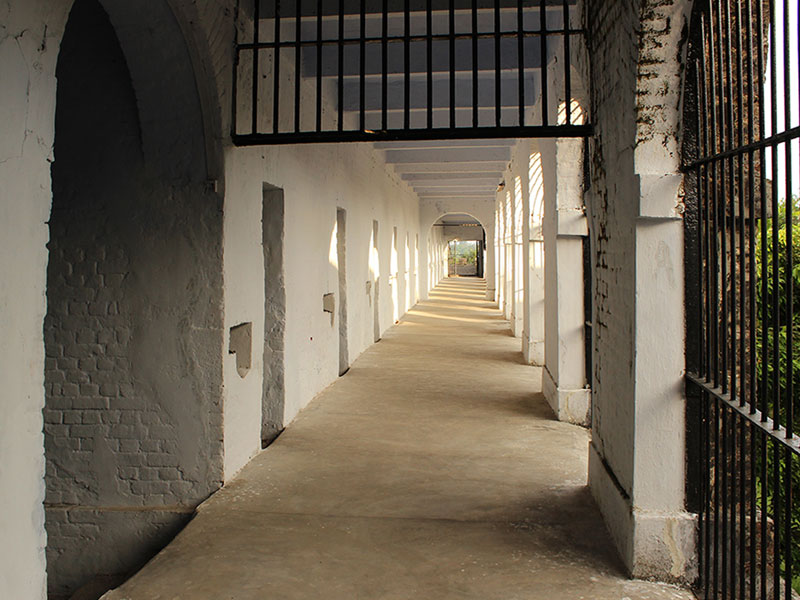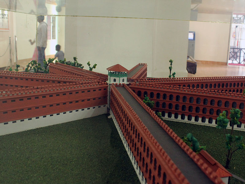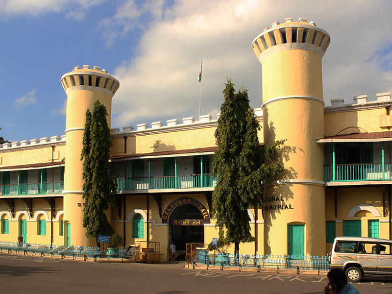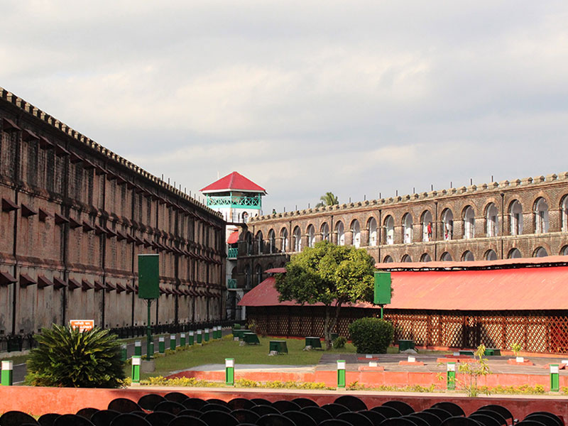 Cellular jail, also known as Kala paani, is situated in Port Blair, Andaman Island. Construction of the jail was started in 1896 and completed in 1906. Jail consists of seven buildings of three stories, which were connected to a central tower in form of a star or spokes of wheel. It had total number of 696 cells and each imprisoned only one prisoner. The jail was designed to minimize communication within the prisoners.