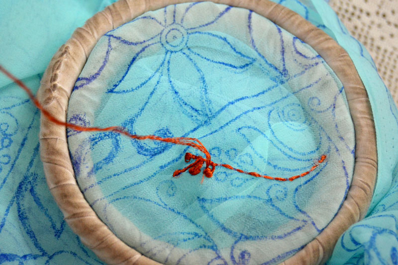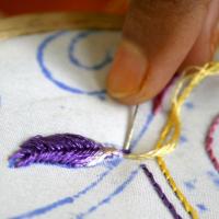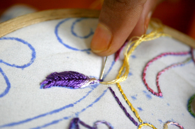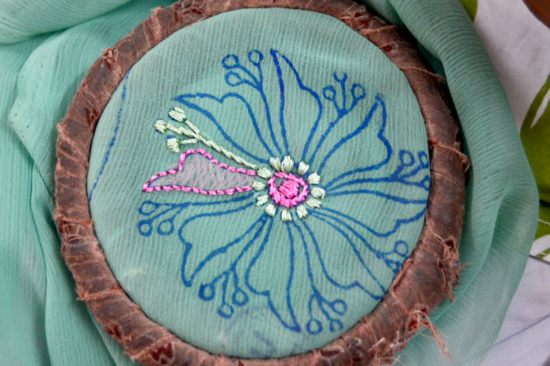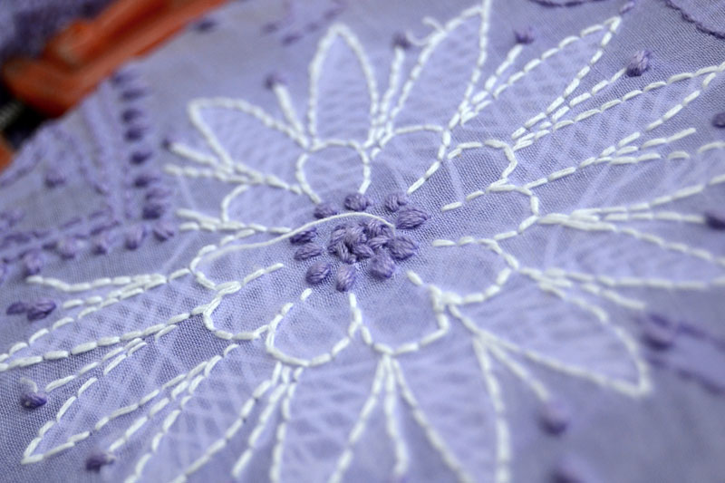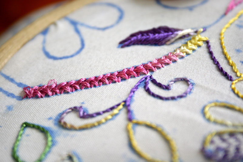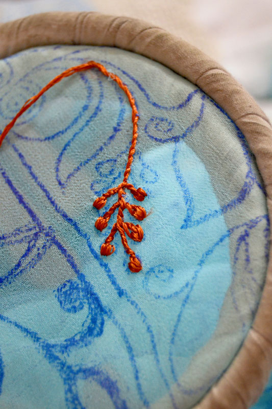 Murri stitch (the stem) and fanda stitch (the embossed French knots).