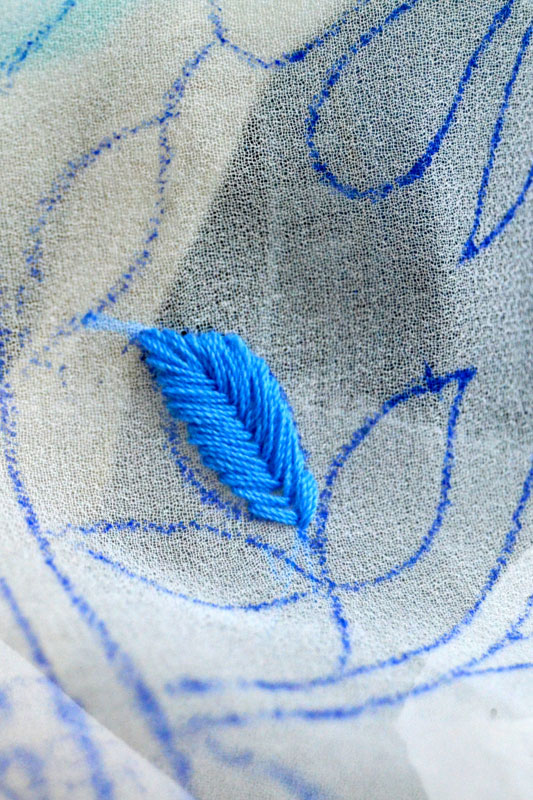 • Murri stitch (the stem) and fanda stitch (the embossed French knots)