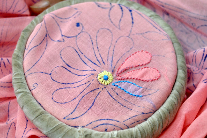 • Murri stitch (the stem) and fanda stitch (the embossed French knots).
