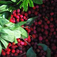 • A clump of litchis put up for sale at a highway fruit shop in the forests of Kumaon.