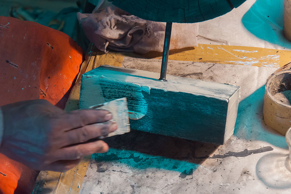 Wooden artifacts are used for various purposes, starting from home decor, site decoration, functional products to utility goods. Mr. Rukshad Bhagwagar is a master craftsman from Nagpur, who runs an art gallery that exhibits wooden carving finished at their warehouse. He has been in this business for 25 years, employing many people from the locality and training them for the skills required. Here the only type of wood used for the making of wooden art is mango wood. The mango wood which is readily available in India is primarily grown for its fruit but is usually cut down after seven years as it generally ceases to produce fruit. The reason for preferring this wood is because they are extremely durable and possess a unique grain pattern. During the making, the wood is oiled to change the colour and obtain an indented texture. Range of products made at Mr. Rushad’s workspace, includes wooden animals, fish, robots, Buddha sculptures, wine bottles, Christmas trees, seashells, and many more, which owns the potential to attract the attention of people for their finishing and unique look.