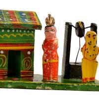 One gets to see the real culture and tradition of India in its villages. Many activities like farming, drawing water from a well, bullock carts, etc. are still thriving in the rural part of the country. Thus, the toys made on this theme primarily show the culture of the rural India which consequently affects the clothing style, patterns, colors, etc. shown in the toys by the craftsmen.