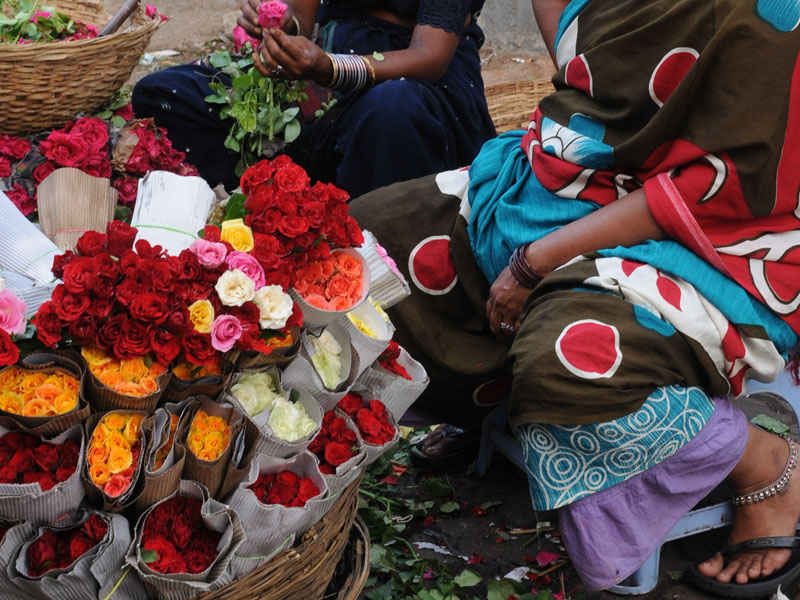 Dadar flower Market is Bombay’s largest Wholesale flower market. The market stretches along the flyover just outside Dadar station. The market comes alive at 4 a.m and closes by 9a.m. The time is short but apparently enough for retailers and decorators to stock up their stores. There is commotion, colour, filth and yet there is fragnance! There are more cut flowers – stalks of Chrysanthemus, gladioli, carnations, orchids, roses and so on. Heaps of Marigold flowers, colourful garlands of various sizes and flowers for offerings are sold here. Dadar market offers lots of colour, people and genuine Mumbai Life.