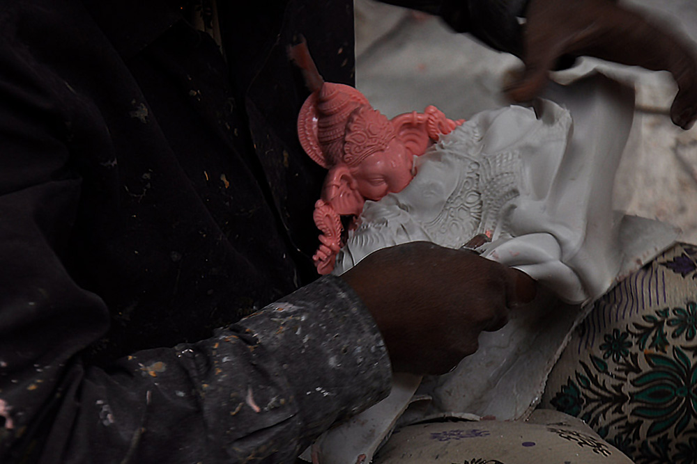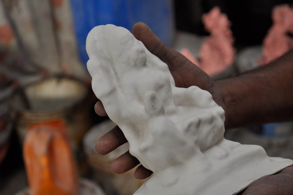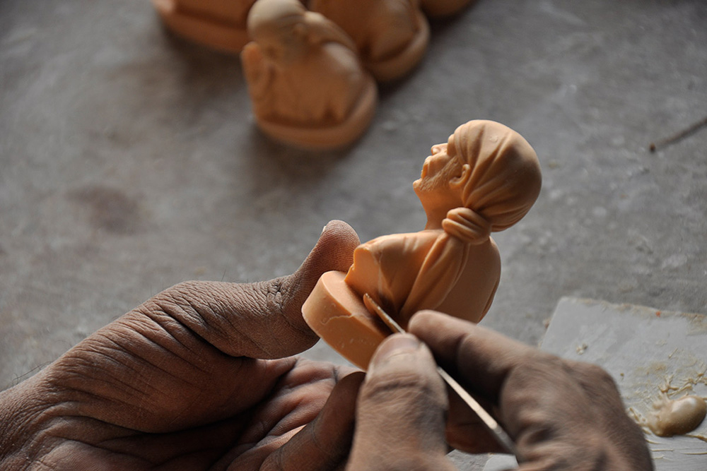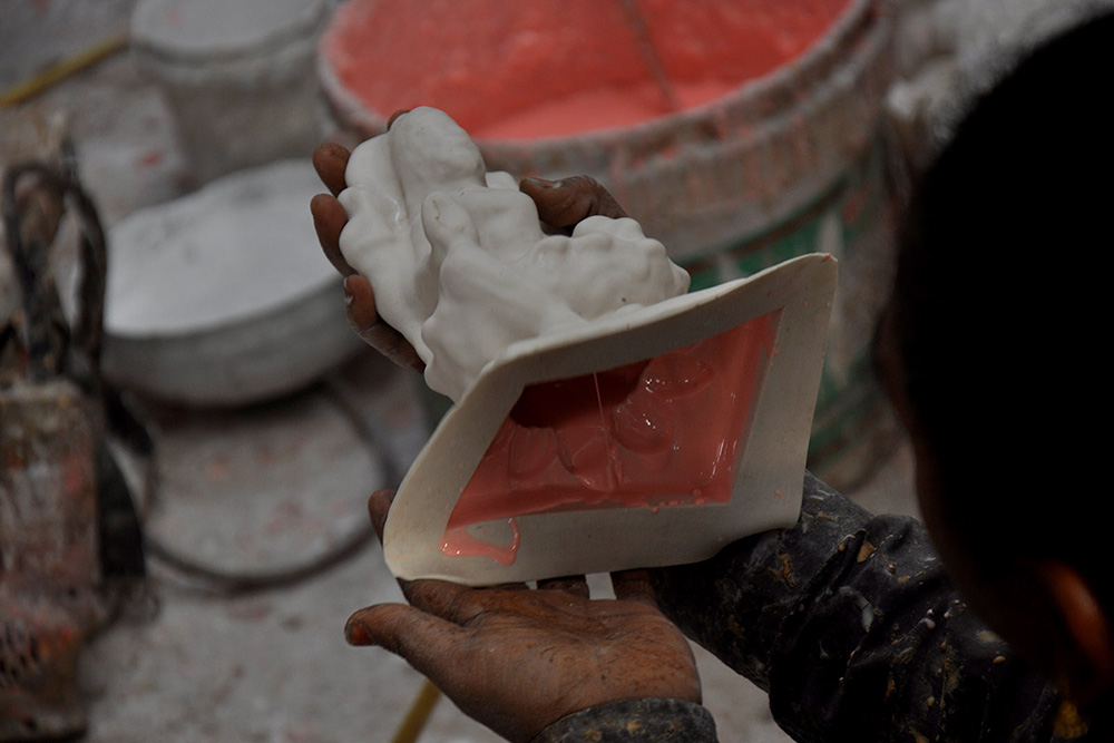 Sculptures have evolved into an important art form across all cultures since prehistoric days. Statuary, a hand modeling method enjoys a significant role in the world of sculpting. Casting statues with fiberglass resin is a new entrant in the category which is a durable synthetic polymer. Mr. Ganesh Ambadas Mudiganti, an Ahmednagar-based artisan who runs a sculpting workshop, has created fiber casting statues for 16 years. He, along with his team members, makes use of flexible rubber molds made from room temperature vulcanized (RTV) silicone rubber and a mixture of resin, chalk powder, and fiber liquid to produce these magnificent models, which are in great demand in the market.
