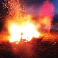 Shots of Fire during a camp on the banks of a lake near the hills, south of Pune city.