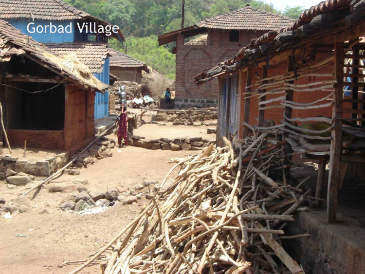 These photographs give a glimpse of the Gorbad village. The Village is surrounded by beautiful landscape and located about 10kms off from the Mumbai - Goa highway at a distance of 17kms from the town of Kolad in Maharastra. The village does not have any phone connection and is not covered by the mobile network.Part of the village got burnt in 1975. Hence, a Gorbad ‘Budruk’ (annexe). Main village is known as Gorbad ‘Khurd’ (main) . The village has many well constructed houses with patterns painted on them. The village has a post office and a woman as a postmaster. The village belongs to the following community – Maratha and Adivasis.