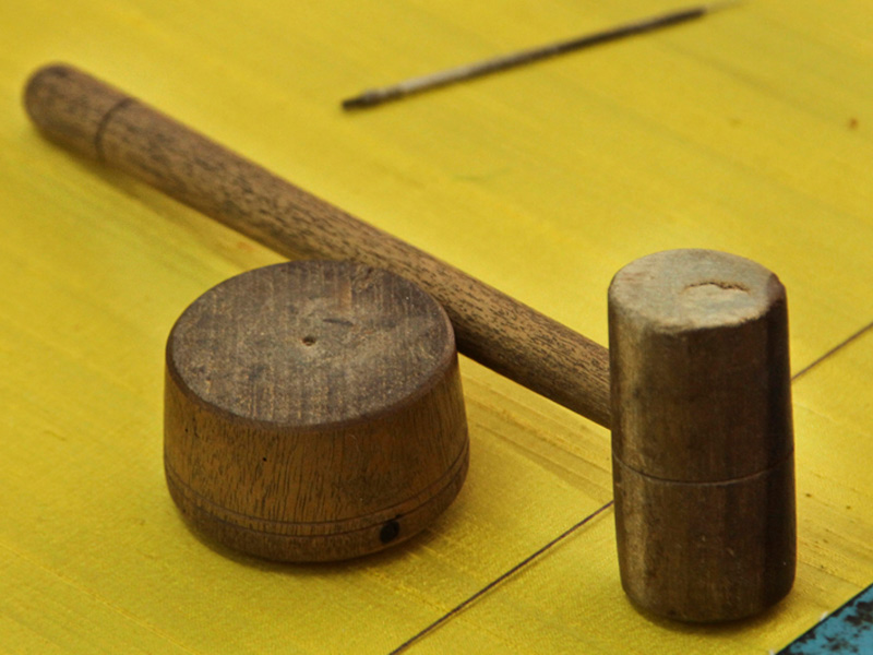 The good quality needle tools are available in different sizes which are used in embroidery work. Colorful threads are used according to the motif. Basic tools and raw materials used are Scissors, Aari : Needle with a hook in the end known as ‘Aari’, Beads and stones are used to embellish on the cloth, and Fabric gum is used to fix stones and beads on the fabric.