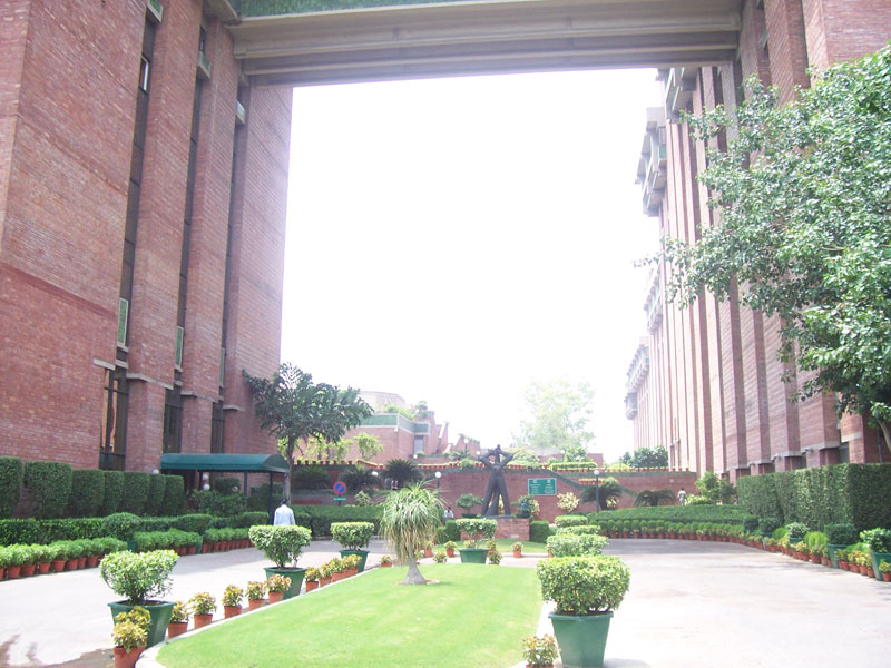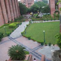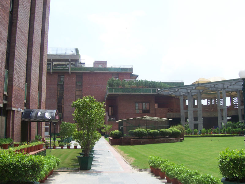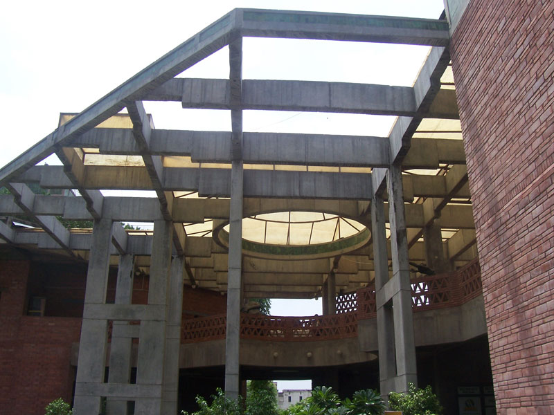These are pictures of India Habitat Centre one of the well-known convention centers of India designed by American architect Joseph Allen Stein, the architectural language used is exposed brick work. The main attraction is the remarkable courtyard within the building which is filled with trees and greenery which creates an image of garden with well-planned air ventilation within the building. The building is climatologically sound with blue sun shading devices which breaks the direct sunlight streams into the space. The Centre is used for various cultural functions such as theatre performances, art exhibitions, film shows which creates a space for highlighting the creativity of artists.