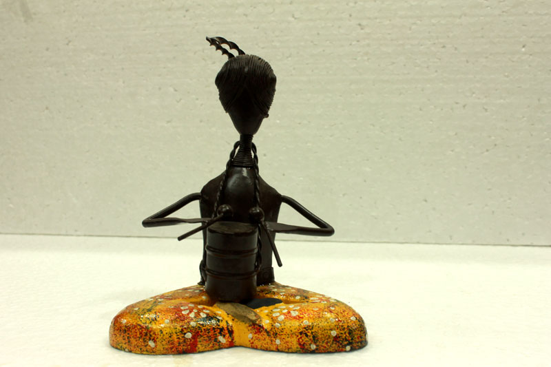 Craftsmen experimentation with mixing more then one material and techniques have been used to make these musicians. Various techniques used to produce the musicians are Coiling, twisting, soldering, casting, painting and ornamentation. Upper body inspires western tribal art and lower body inspires the traditional style.