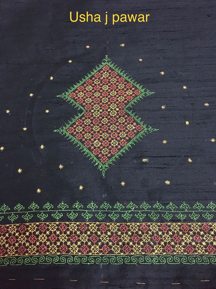Many women artists practice varieties of embroidery. Smt. Usha Pawar from Bengaluru mastered the art of embroidery in Kasuti. Her passion for learning new things not only bring her into the limelight but also made a difference in people’s lives. She fell in love with this art when she happened to come across a gorgeous Kasuti saree. Usha learned this art from her teacher Anita Chaudapurkar. In 1990 Mudra Coats held an event which became a turning point in her life. Usha was nominated for National Award in the Anchor embroidery contest in the year 1992.