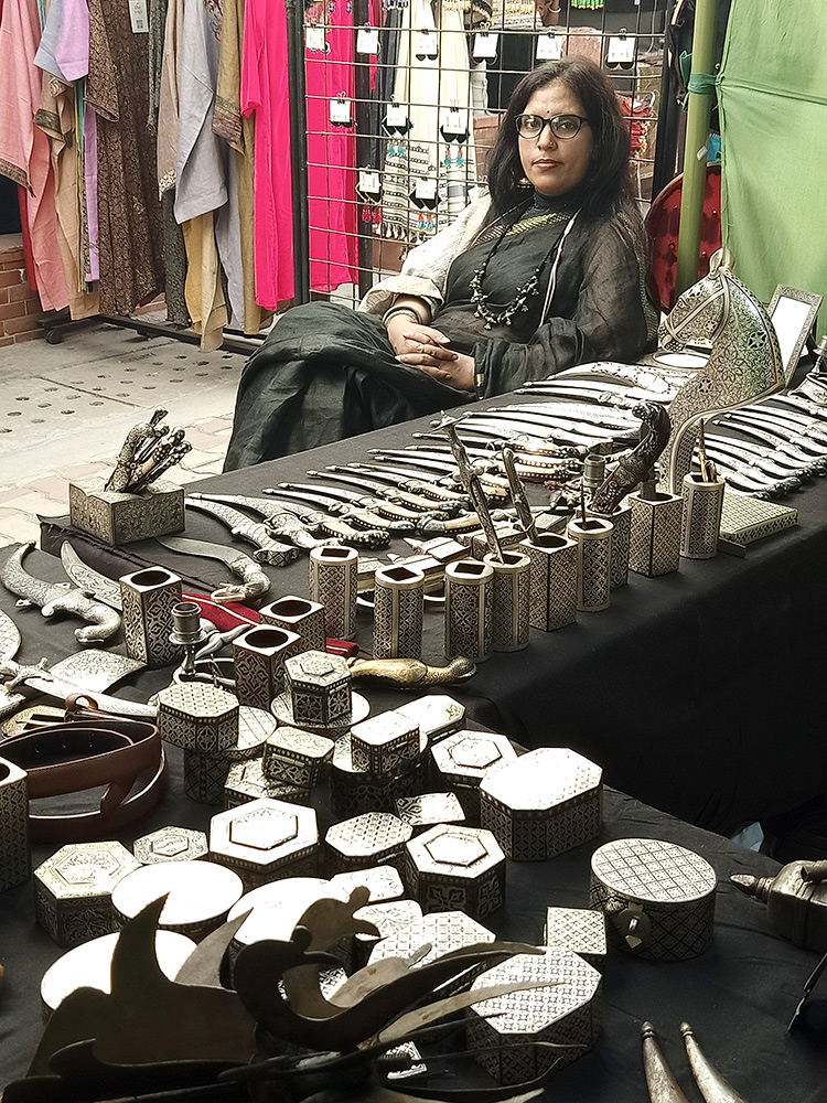 The art of decorating arms and weaponry is known as Koftgiri. This art originated in India around 500-700 years ago with the Mughals. An age-old craft is practised in Mewar district. Nowadays it can be seen in Jaipur and Udaipur. Koftgiri refers to the action of ‘beating’ the pattern into iron. It can be both an inlay and overlay art. It is the art of ornamenting surfaces by inlaying light metal on a dark one using gold or silver wires.