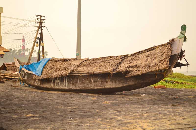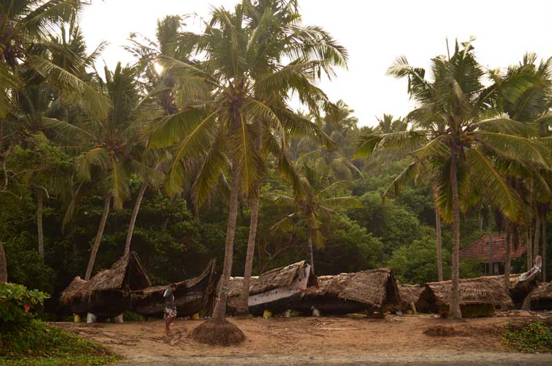 • “Vallom” boat covered with coconut palm thatch as a protection against the weather.