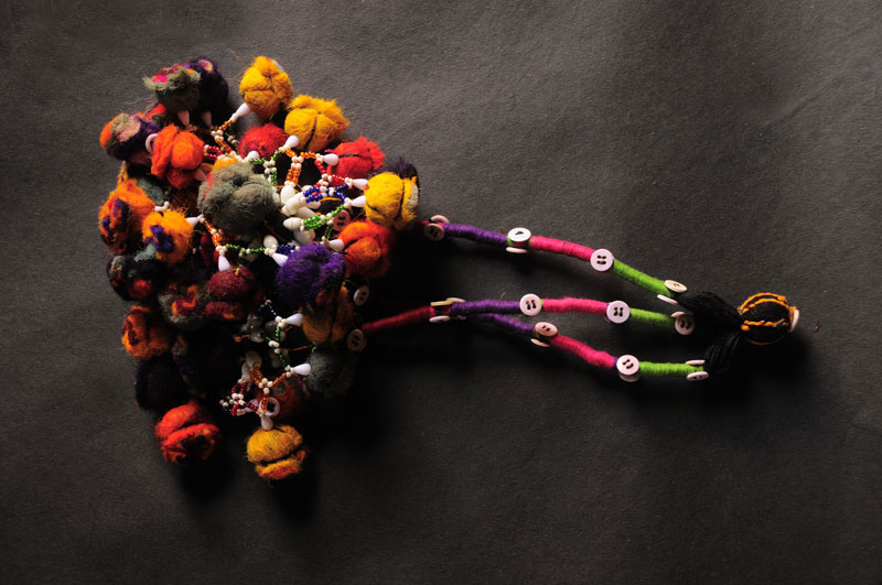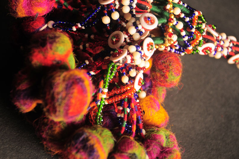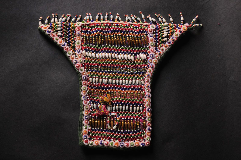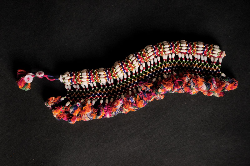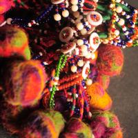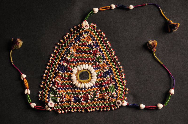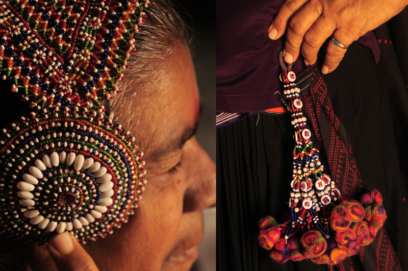 Bead Jewelries and embroidery art is traditionally done by Rabari women in Kutch. These are made from colorful glass beads in combination with colorful threads and are aesthetically pleasing. Rabari women in their leisure time, elaborately embellish garments, bags, jewelry and animal trappings, that are used for decorative and functional purposes. The jewelries are created by women for themselves and their families and are used extensively during community marriages and festivals. The symbolic interpretation of these items is its association to generate wealth. It is a contribution to the dowry. The bride makes decorative garments, bags and jewelry for the groom that is worn by the groom during the ceremony. The photographs are a collection from the Vanka Kana Rabari in Bhujodi village, Bhuj-Kutch.