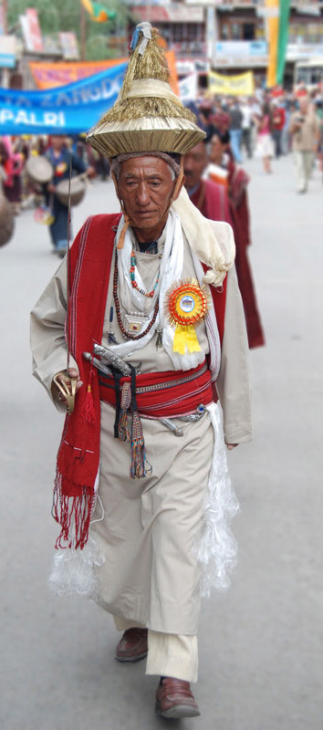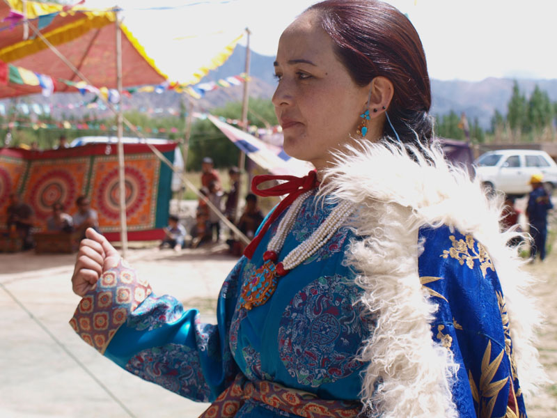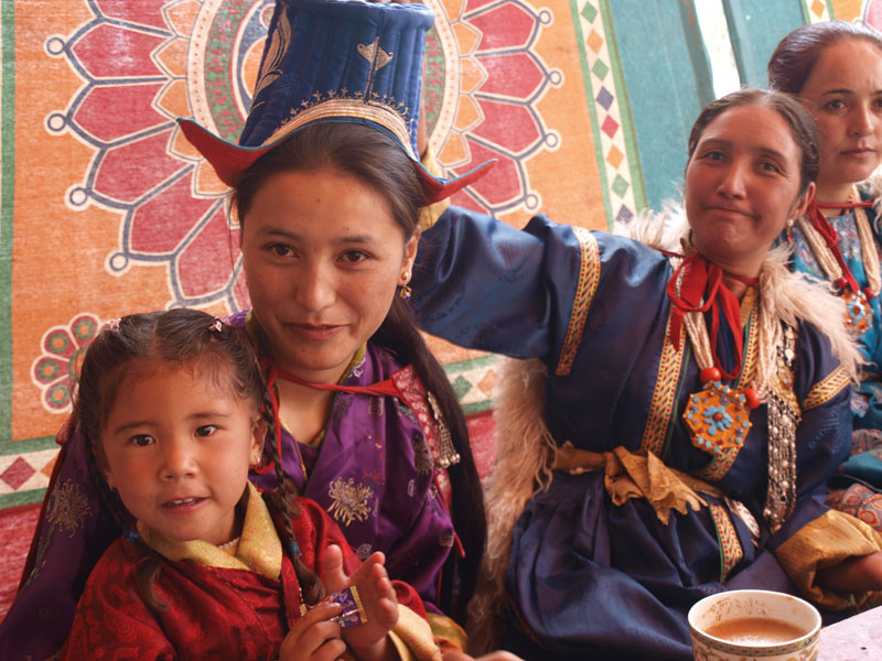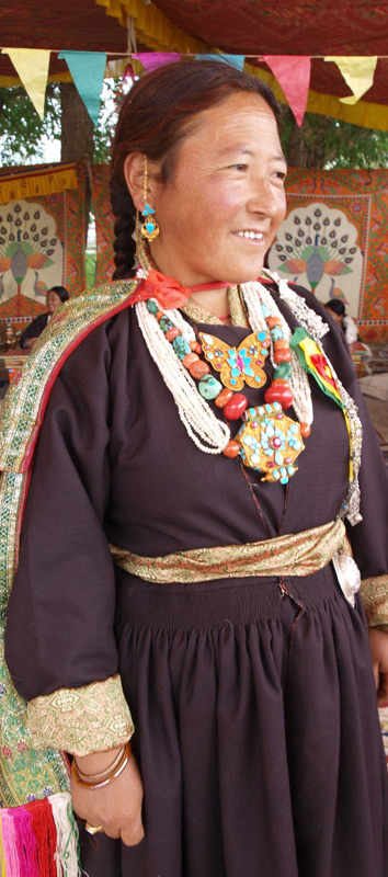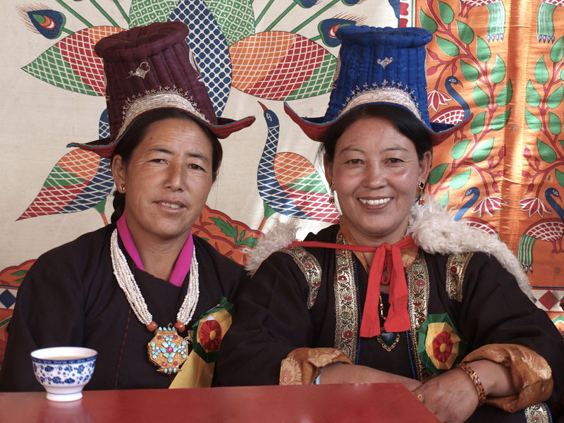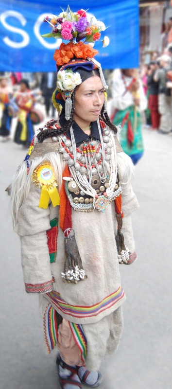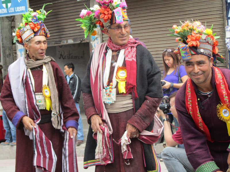 Different communities have their own traditional dresses which mostly comprises of intricately designed textiles, beaded head gears, antique are extravagant jewelry, animal furs and other locally available resources. These attires give visual identity to the people staying in the varied regions of Ladakh.