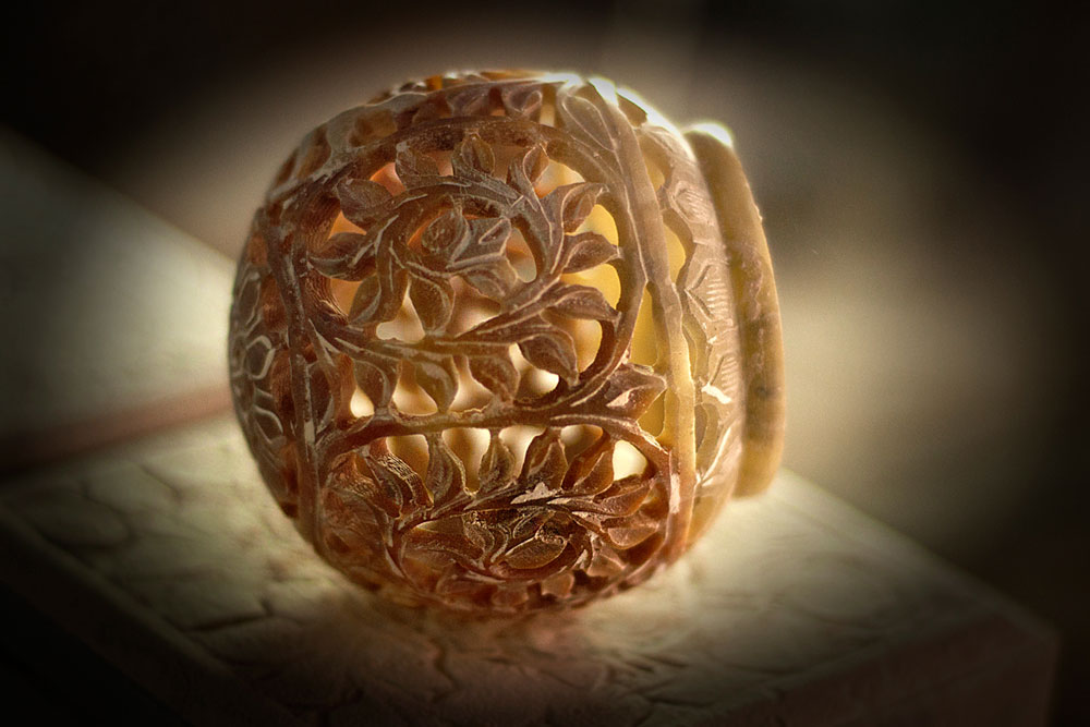 Although this kind of stone jali work was meant for architectural purposes, but a small group of craftsmen of Agra have inculcated this technique of fretted stone work to make articles such as ornamental boxes, incense boxes and lamp shades of varying grades, especially for tourist trade.