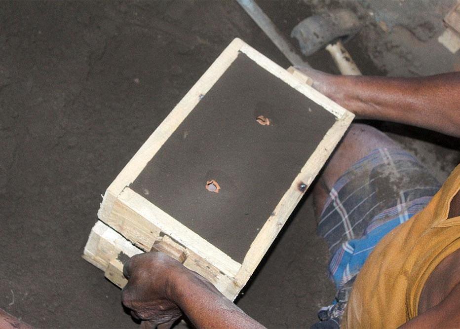 Sample patterns are kept inside the molding box.