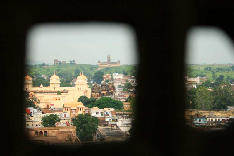 Orchha was founded in the sixteenth century by the Bundela Rajput chieftain, Rudra Pratap, who chose this stretch of land along the Betwa river as an ideal site for his capital. It lies in Tikamgarh district of Madhya Pradesh. On a seasonal island on the bank of the river, which has been surrounded by a battlement wall, stands a huge palace-fort called Jahangir Mahal. Numerous cenotaphs or chhatris dot the vicinity of the fort and the river. Elsewhere about the town there is an unusual variety of temples and tombs, including the Chaturbhuj temple (built on a vast platform of stone), each contributing to the nostalgic beauty that is Orchha.