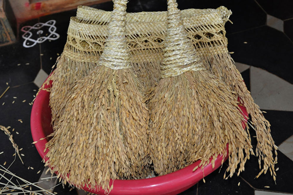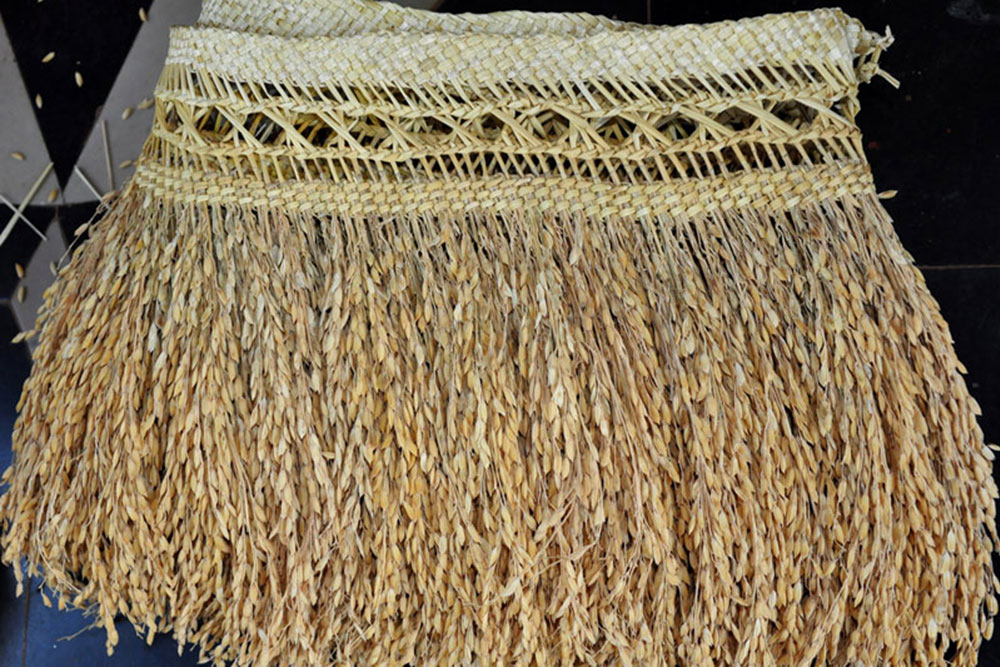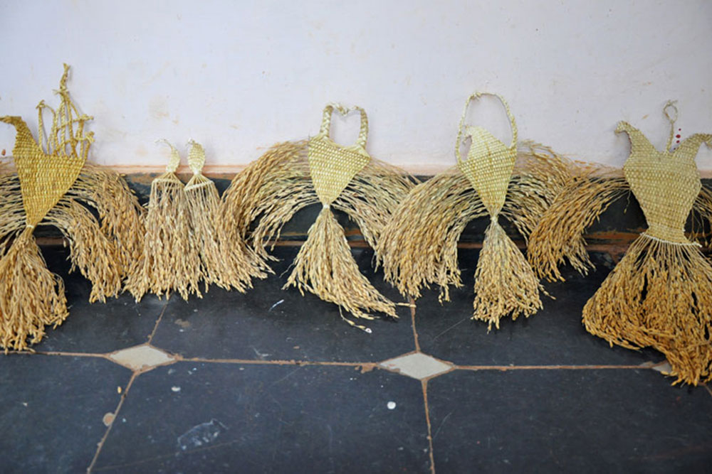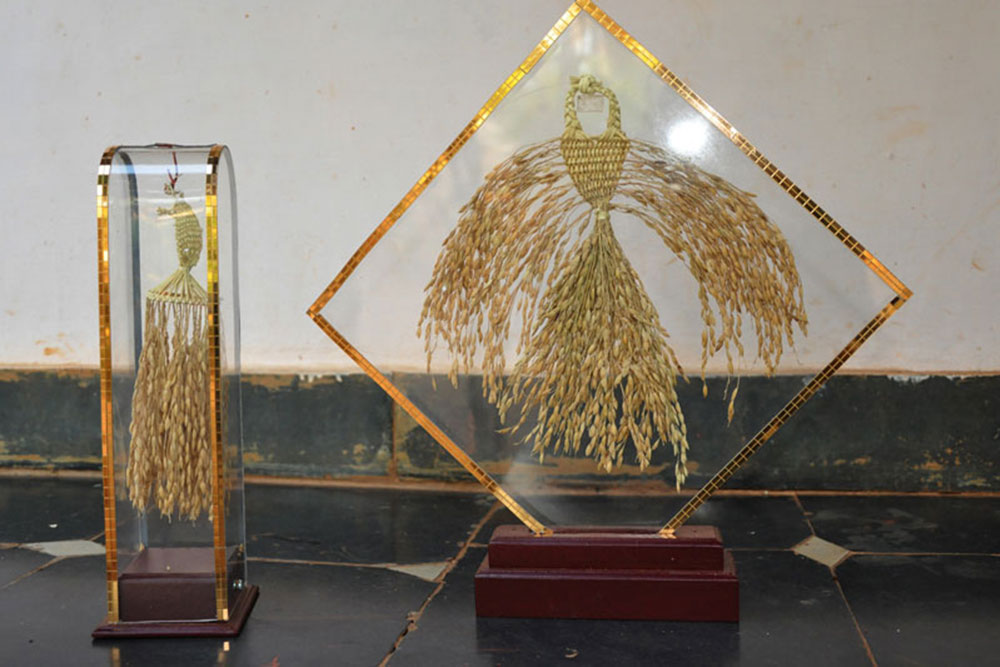 Paddy grain filling are creatively made into interesting decorative items. The finished traditional products are mainly for decorating doors and corridors during festivals and weddings. The life span of final product is 10 years.