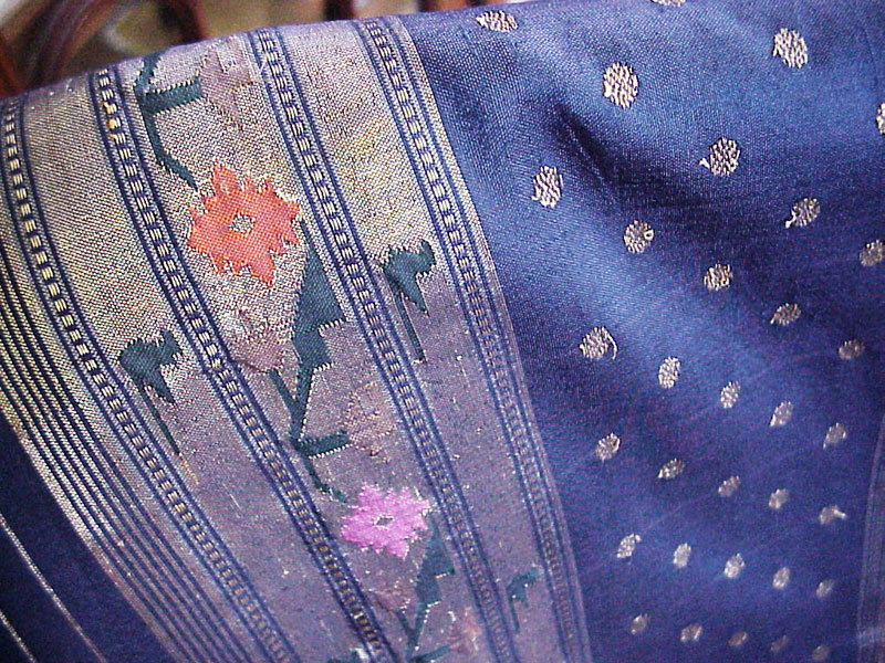 Paitani Sarees are woven in the town of Paitan situated near Aurangabad in Maharasatra. The paitani sarees are made nowadays out of fine silk with hand woven gold and silver threads forming some of the patterns. This tradition has been kept alive by dedicated craftsman for over 2000 years. The patterns are derived from motifs from the Ajanta Caves.