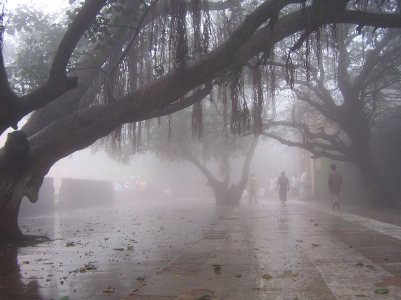 These are pictures of Jain temple city of Palitana located on Mount Shatrunjaya in Bhavnagar district of Gujarat. These were built in two phases-during the 11 and 12th centuries as part of the renaissance of temple building all over India The peak is a 3 ½ km climb of over 3500 steps from the town. Approximately 863 marble carved temples are located in Palitana. The pillars on which these temples stand are carved with images of idols, floral motifs and different geometrical decorations. The whole experience is enhanced by the surrounding cloudy mist which passes through the temple pathways and makes it feel like heaven among clouds.