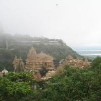 These are pictures of Jain temple city of Palitana located on Mount Shatrunjaya in Bhavnagar district of Gujarat. These were built in two phases-during the 11 and 12th centuries as part of the renaissance of temple building all over India The peak is a 3 ½ km climb of over 3500 steps from the town. Approximately 863 marble carved temples are located in Palitana. The pillars on which these temples stand are carved with images of idols, floral motifs and different geometrical decorations. The whole experience is enhanced by the surrounding cloudy mist which passes through the temple pathways and makes it feel like heaven among clouds.