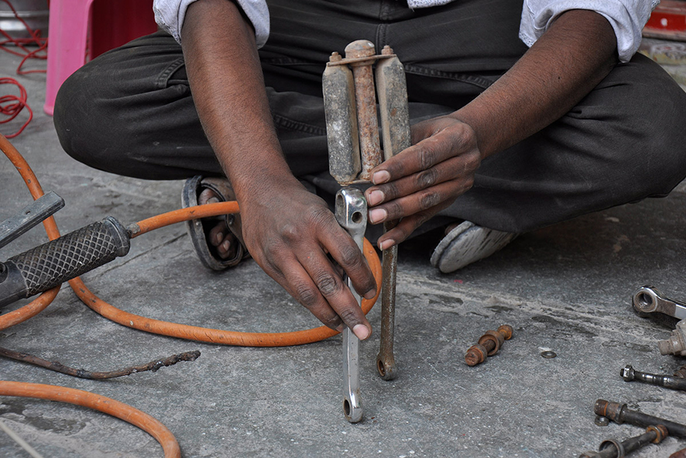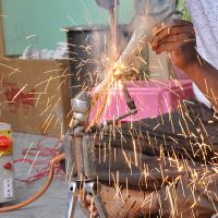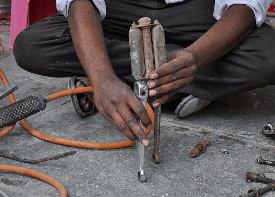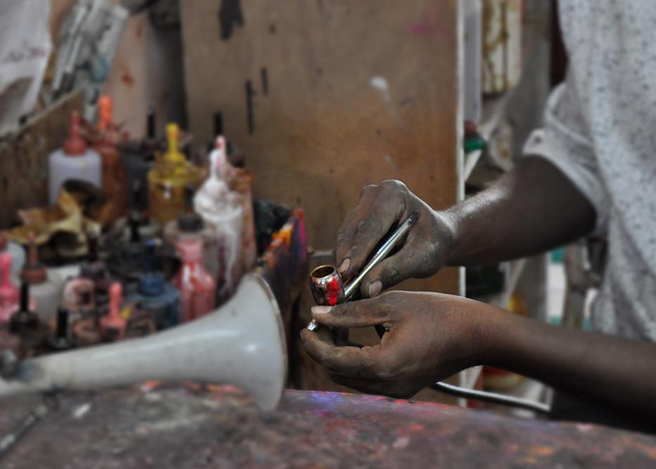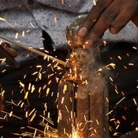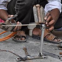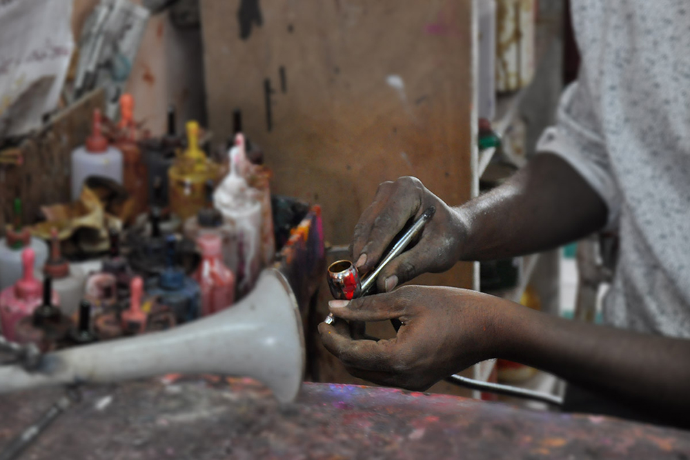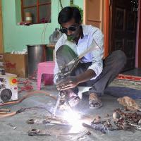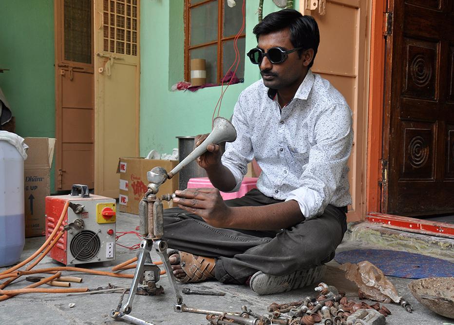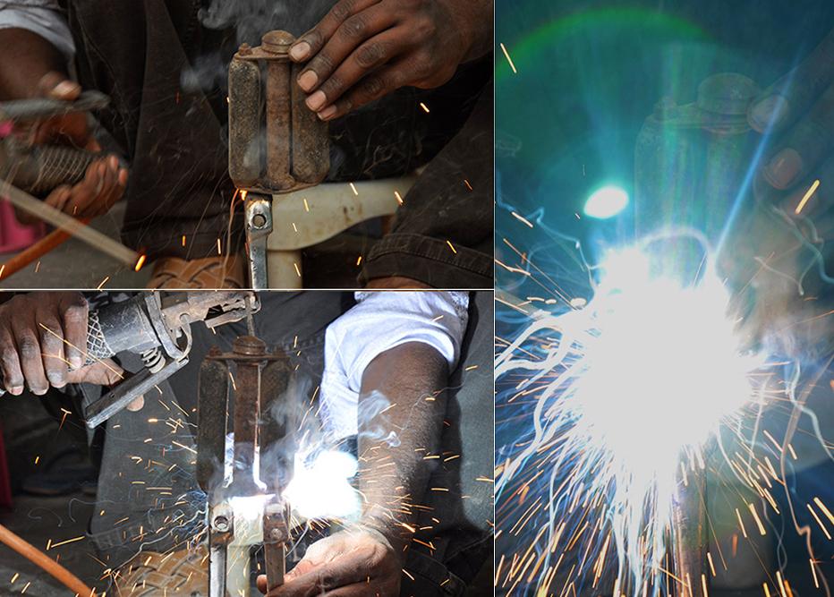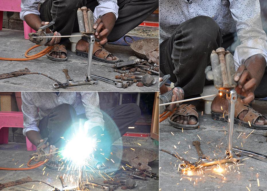 Mr. Balaji Vallal is a well-trained sculpting artisan who runs his art workshop in Ahmednagar, Maharashtra. At the center, sculptures of clay, fiber casting, metal spoon birds, and scrap metal statues are developed, which are widely exhibited as well as sold to customers spread widely. He has been felicitated with awards and mementos for his contribution to his area of expertise. Scrap is a leftover obtained after a greater portion of something has been used, thus qualifying itself to be recyclable material. Firstly, the artisan gathers scrap metal pieces that suit his/her idea of sculpting. Once selected, these parts are arc welded step by step, at the end of which all the parts are fixed together. Then this semi-finished structure is painted with latex paint using a spray painting gun for a flawless finish.