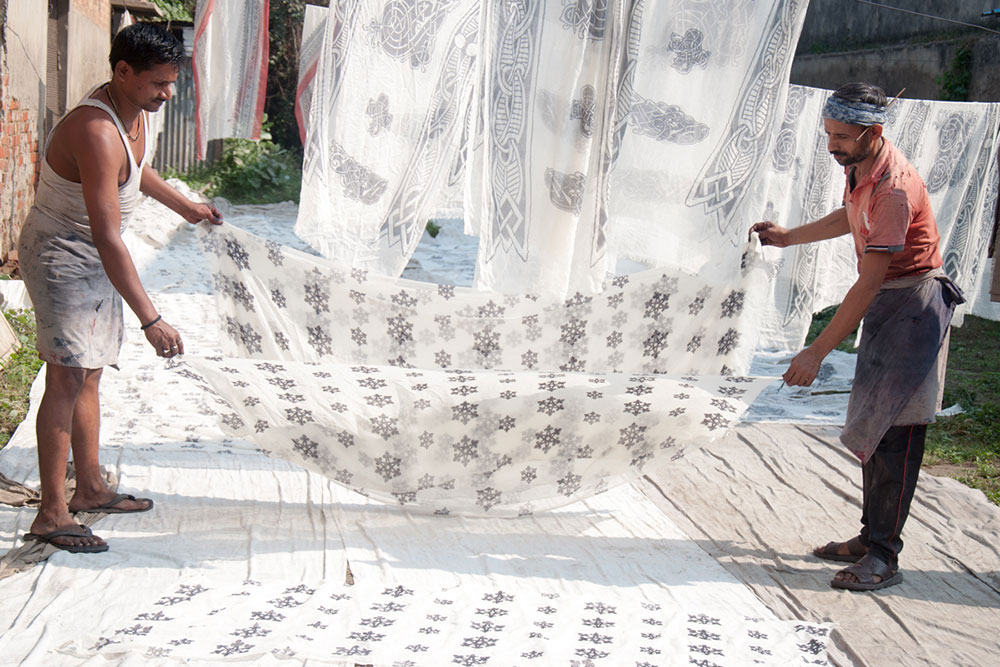 In screen printing technique there is a mesh that holds the design and ink is passed on through the pores that settle on the fabric and the designs get imprinted. The screen is constructed first with appropriate precaution making sure the design area to be flawless where the ink is passed and the area beside the design to be impermeable to the ink.