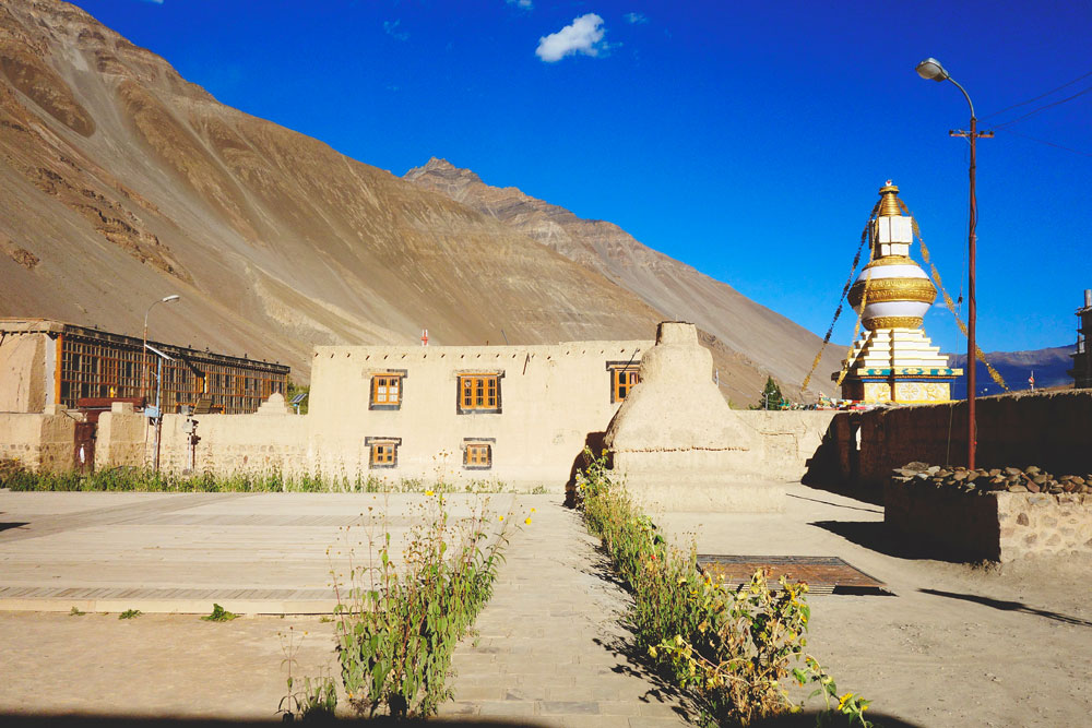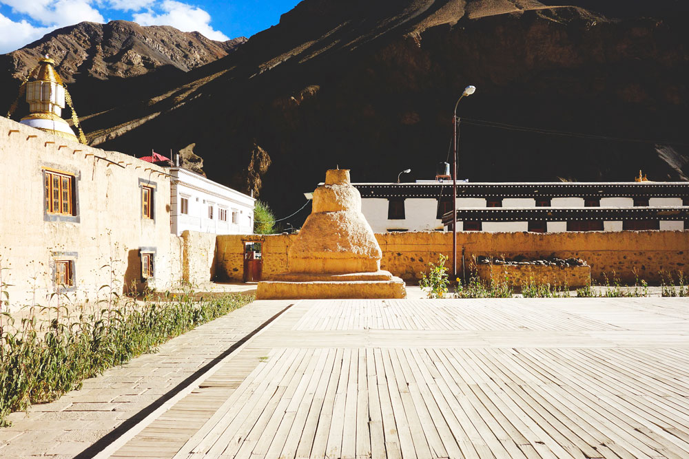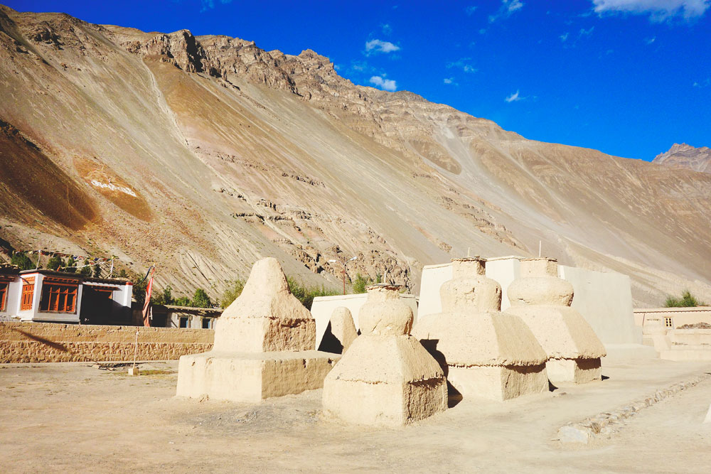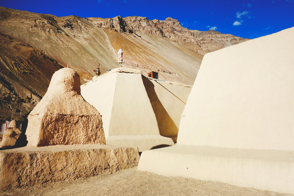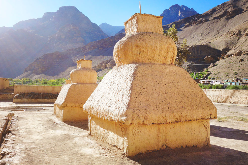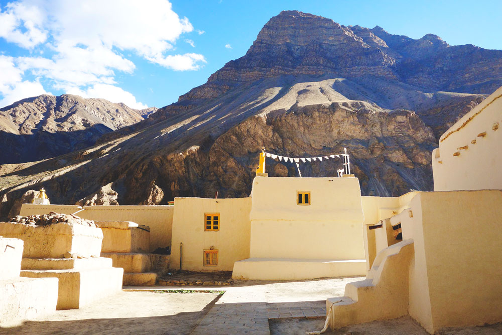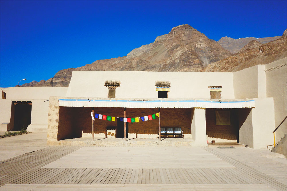 Grand mountain range envelops a small part of Spiti River Valley in which lies the village of Tabo, home to around 350 people and a Monastery, 3050 m above sea level. Also known as the ‘Ajanta of Himalayas’, Tabo Chos-Khor Monastery was founded in 996 A.D. by great teacher and translator Lotswa Rinchen Tsang Po, the western king of Himalayan Kingdom of Guge. It was developed as an advance centre for attaining knowledge and to date, it is the preserver of the Buddhist legacy and is one of the most important monasteries of the entire Tibetan Buddhist world. It is made on a flat ground with the use of mud brick and covers around 6300 sq of area. The monastery temples accommodate a rare collection of manuscripts and thangka paintings, beautiful statues in stuccos, murals and frescos depicting the legends from the Mahayana Buddhist Pantheon. The paintings at every inch of wall are still astonishingly well preserved. The monastery complex holds 9 temples, 23 chortens, a monk's chamber and an extension that accommodates the nun’s chamber.