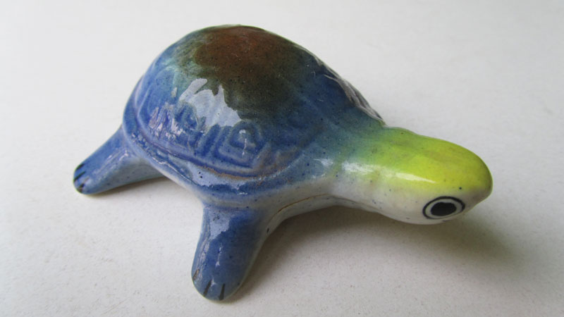 Overall view of the ceramic tortoise from China.