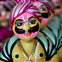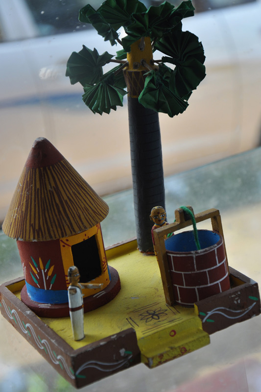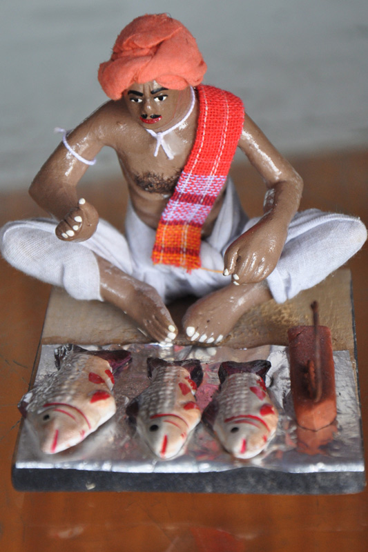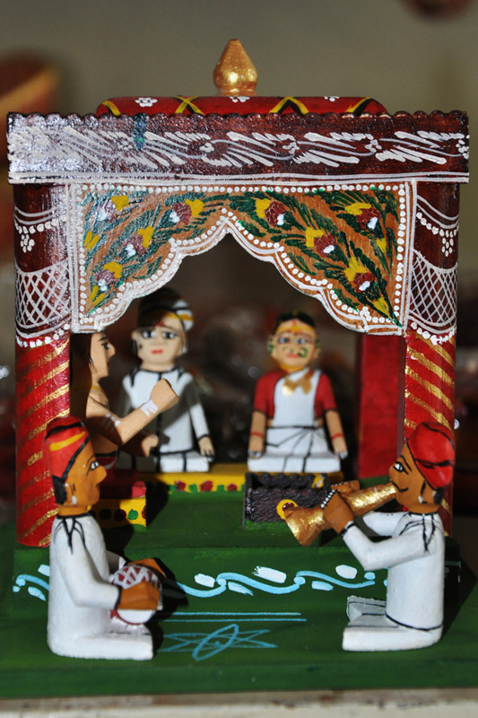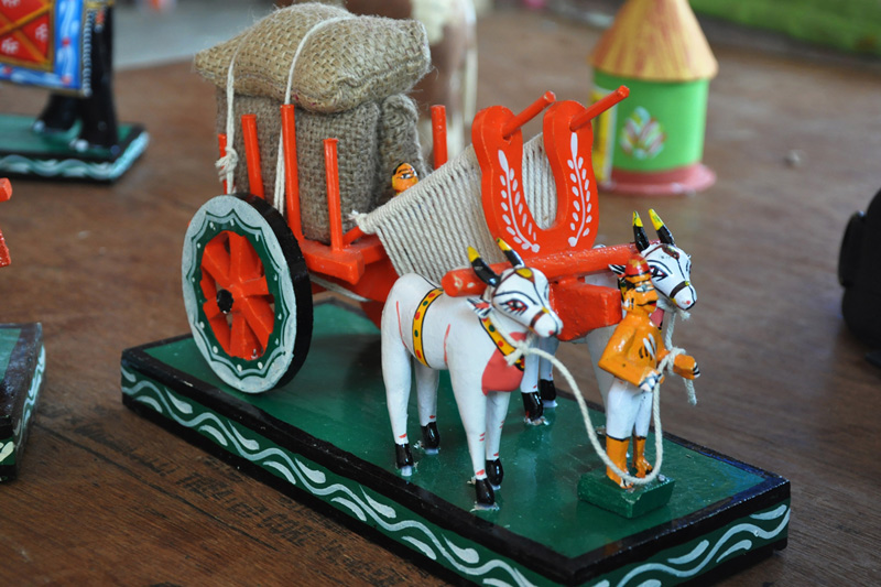 Kondapalli is a small village near Vijayawada. Kondapalli toys have been famous for quite a number of decades and the history seems to be that few Rajasthani karigars (Artisans) settled over here and started making these figure. The craftsmen of Kondapalli belong to the Arya Khatriya Community and toy making has been in the family for generations. The themes of these toys were primarily depicting rural background & Hindu mythology with backdrops like Churning of Milk/Curd, Bullock cart riding, Elephants with Ambari, Dasaavatar set, Radha Krishna combos etc. The toys are small but narrative. Mythology and village life are the most common depictions carved in Kondapalli.