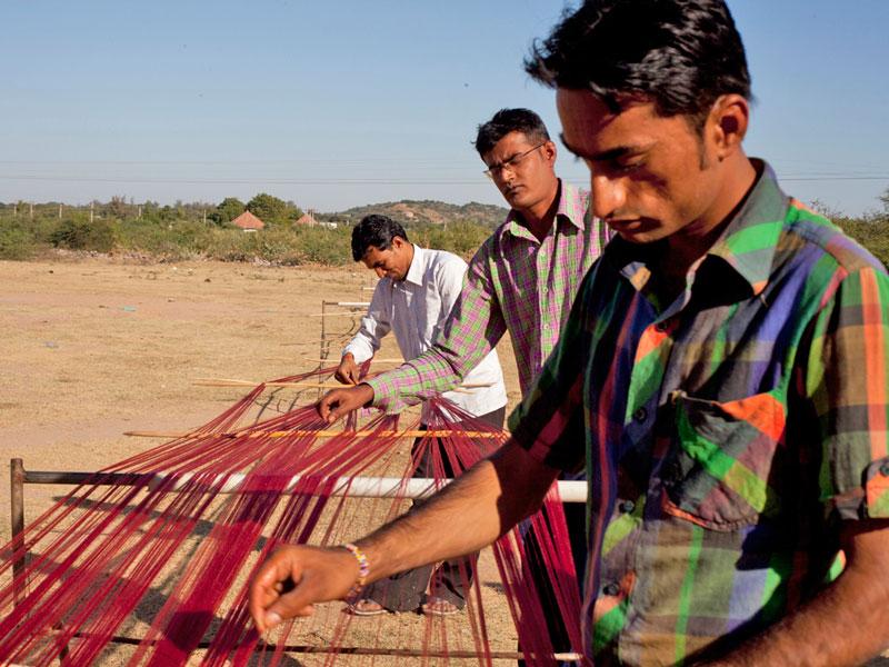 A. The acquired threads are dyed in desired colors depending on what the design demands. Generally synthetic colors are used for dying. Threads are dipped in the boiling mixture of color and water. Wool is dyed at a higher temperature whereas the cotton threads are dyed at a lower temperature. Boiling helps in fixing the colour on to the threads.