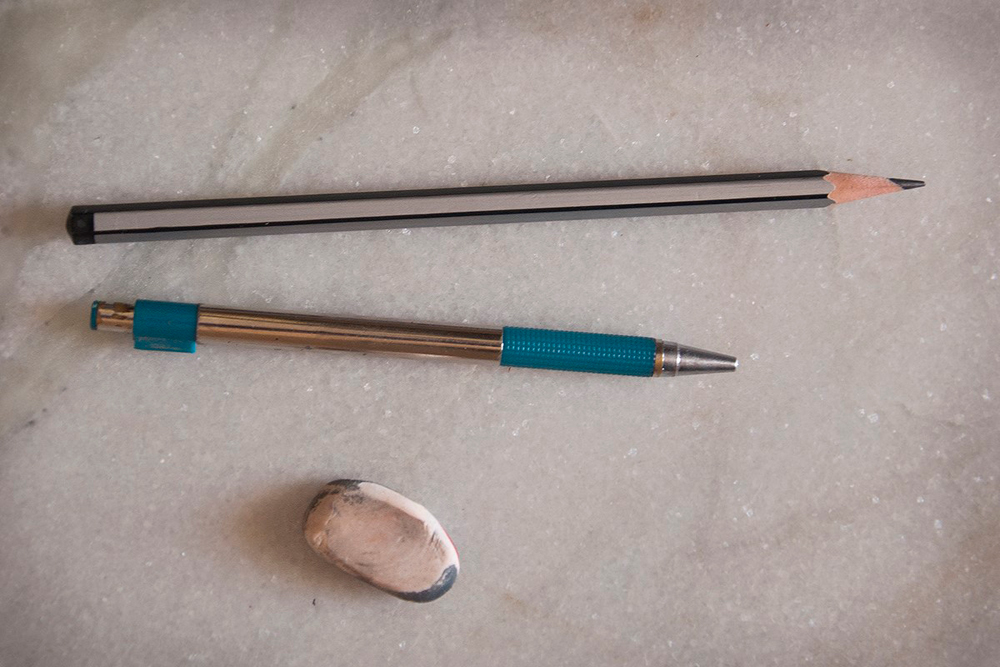 | • Pencil | - To mark a primary outline of the scene from Indian epics/mythology on canvas. |