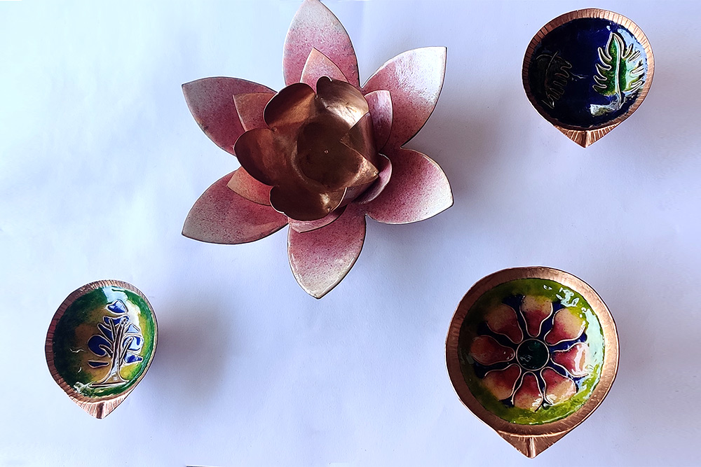 India is rich in traditional handicrafts. Many artisans carry their art legacy for generations. Every state has its own handicrafts in India. Copper enamelling art is a unique one. Simple copper products are decorated with attractive colours that in the end enhance the look of the final product. It took countless efforts for the artisan to complete one artefact.
