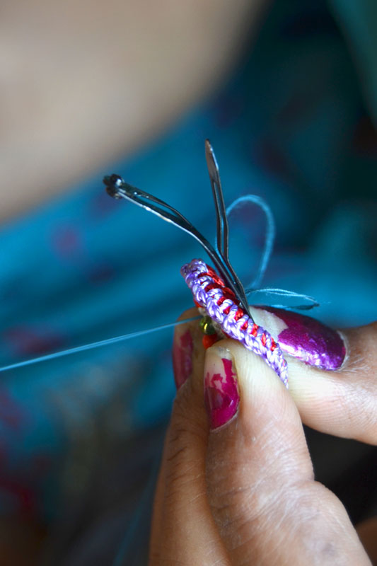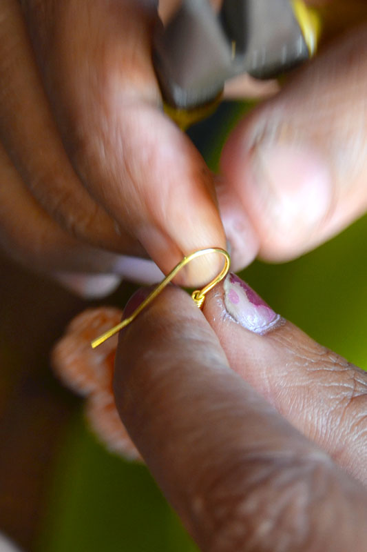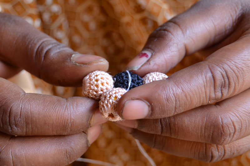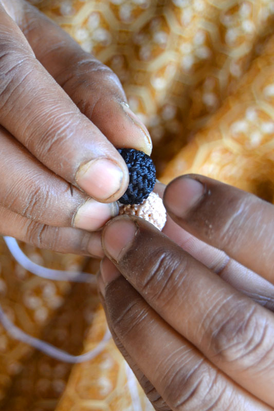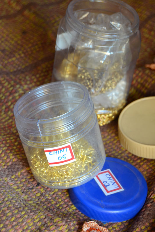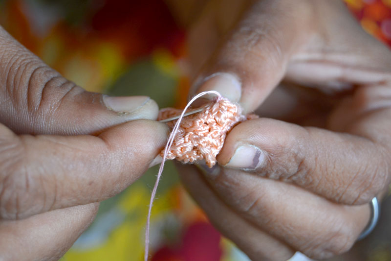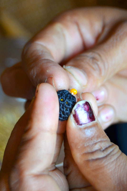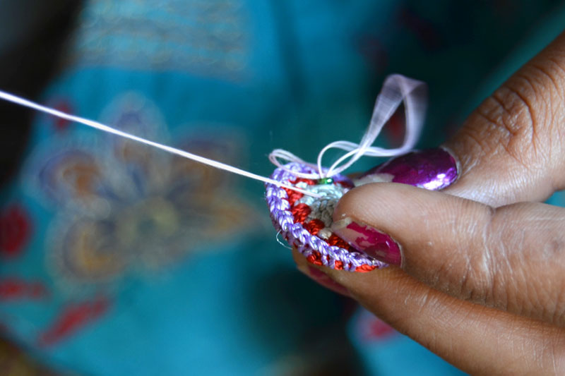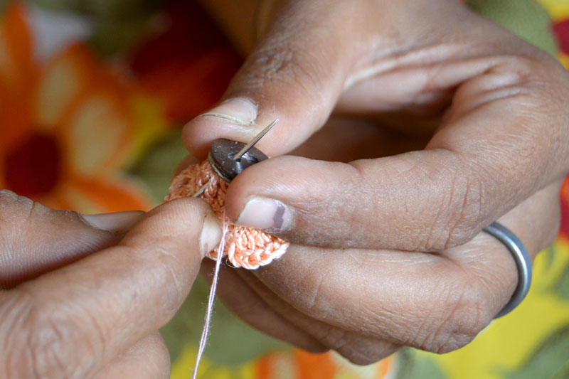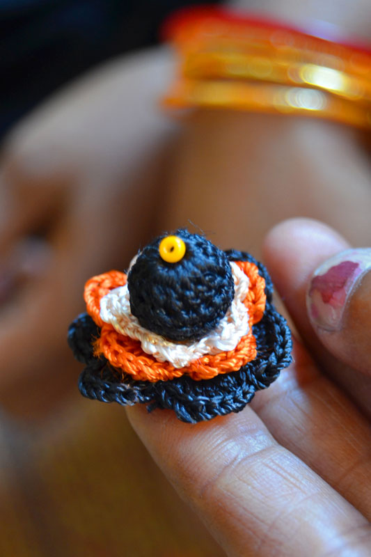 The crocheted piece is ‘finished’ by closing the loose end of the working thread into the pattern and trimming extra ones (if any). Other tasks include attaching metallic earring loops, hair-pins, wooden jooda pins etc. to the chakris and flowers to complete the product.Simple crochet jewelry pieces can be made more interesting by introducing decorative materials like colored beads, sequins, charms, danglers etc.