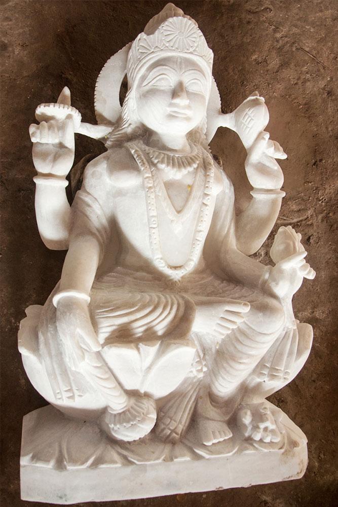 Gradually the sculptor changed the rough stone block into general shape of the statue. Detailing the sculpture requires dedication and patience. At this stage artisan starts detailing the sculpture using customized tools and riffler. Polishing is the last process of marble carving. Marble polishing stone called ‘batti’ which is available in local market of Varanasi is used to polish the marble sculpture. Artisan rubs the batti by pouring water to the sculpture to get a neat finish. Marble has the capability to take a high polish. Finally the polished sculpture is washed with clean water. Artisan start to paint the sculpture with the customer’s interest. Enamel or oil based paints and round brushes are used to paint the sculpture.
