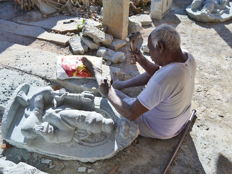 Though the backyard was small the craftsman had used this space efficiently to display his sculptures for visitors to see and purchase. He blended his contemporary work with his traditional work and this way he could portray his capability to cater different and new requirements.