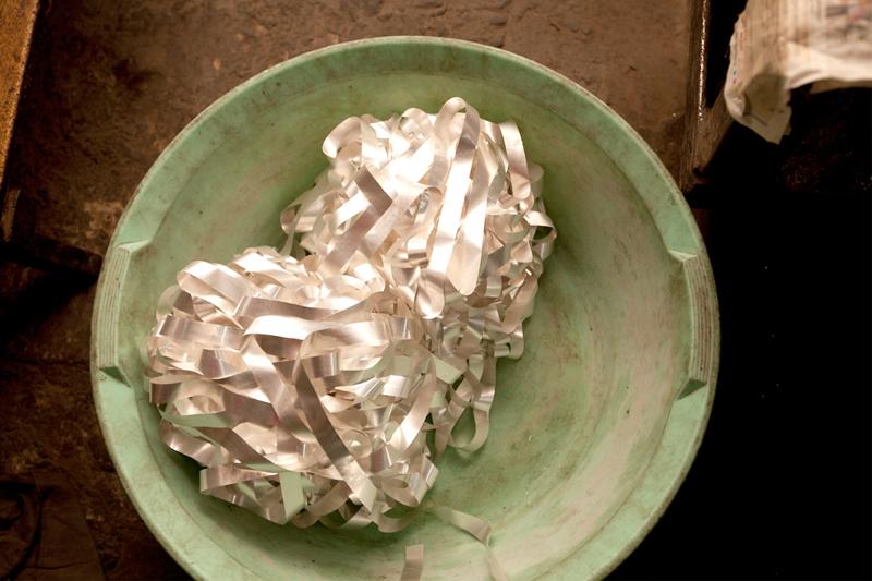 A string of small beads are used to rub on Varakh coated metal products to give it a shine.