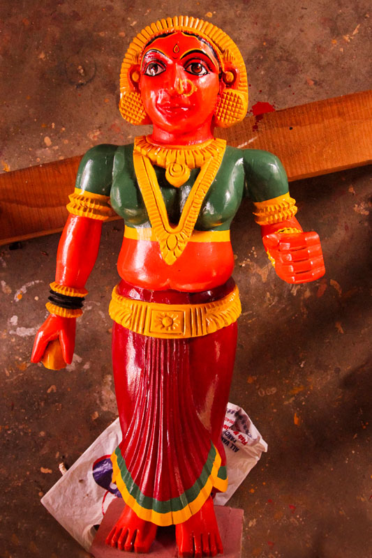 Different figures are carved out and painted on wooden pieces with the character of the Gods and goddesses. The idols are usually made of Halassu wood which is said to be sacred for making idols of God. Some of the carvings are of Varaha Swamy (one form of Lord Vishnu), God Nandi, and the Three-headed Bhoota idol, the incarnation form of Lord Shiva. For smaller idols, it cost around five to eight thousand rupees.