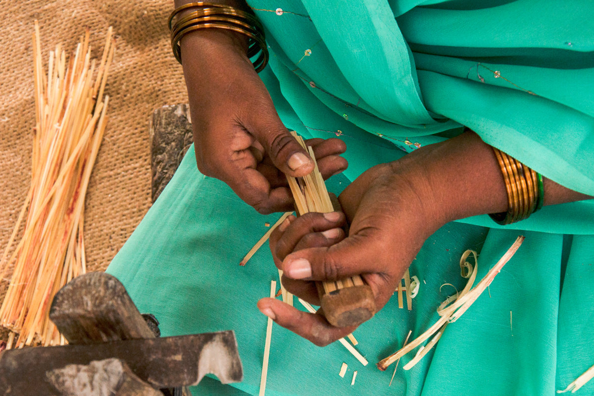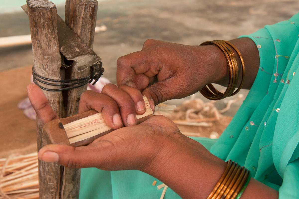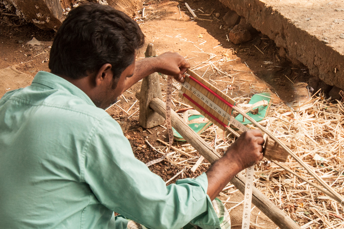 In Rami reddy Palem around 20 families are into making wooden reeds, to complete a single reed in a day, a minimum of 3 people are involved. Men and women equally contribute to making of reed. Reed is locally called as Panni in Telugu, reed being an important part of the loom, people are unaware about the difficulties involved in making a reed. Handloom weaving is a well-known craft, whereas reed makers and their whereabouts are anonymous to many craftsmen.