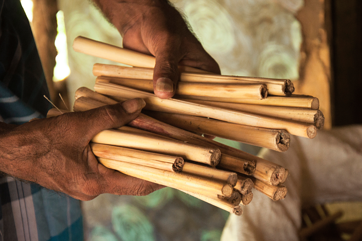 Reeds are made from the stem of jowar plant (Sorghum genus) which is available in Pondicherry currently. Craftsmen purchases the particular material on a yearly basis which costs around 50,000 rupees approximately for a family consisting of 4 members, number of reeds are dependent also on the family, so the materials purchased in a family of 2 is around 30,000 only for jowar plant.