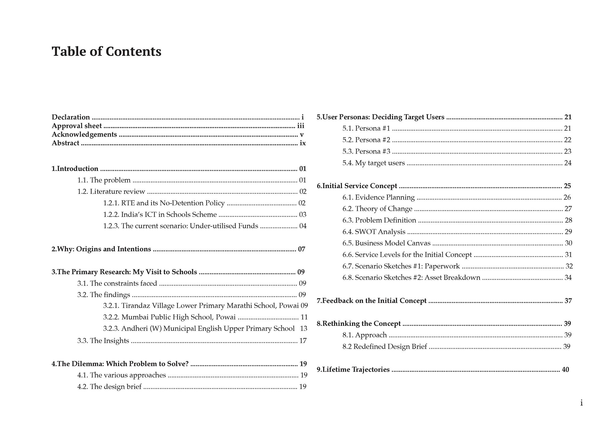• Initial Service Concept